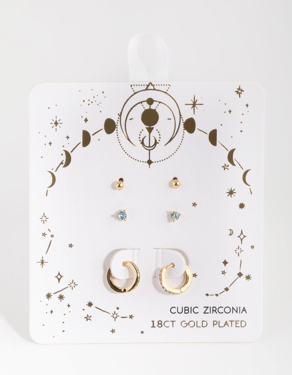 18ct Gold Plated Aquamarine Cubic Zirconia March Earring Pack