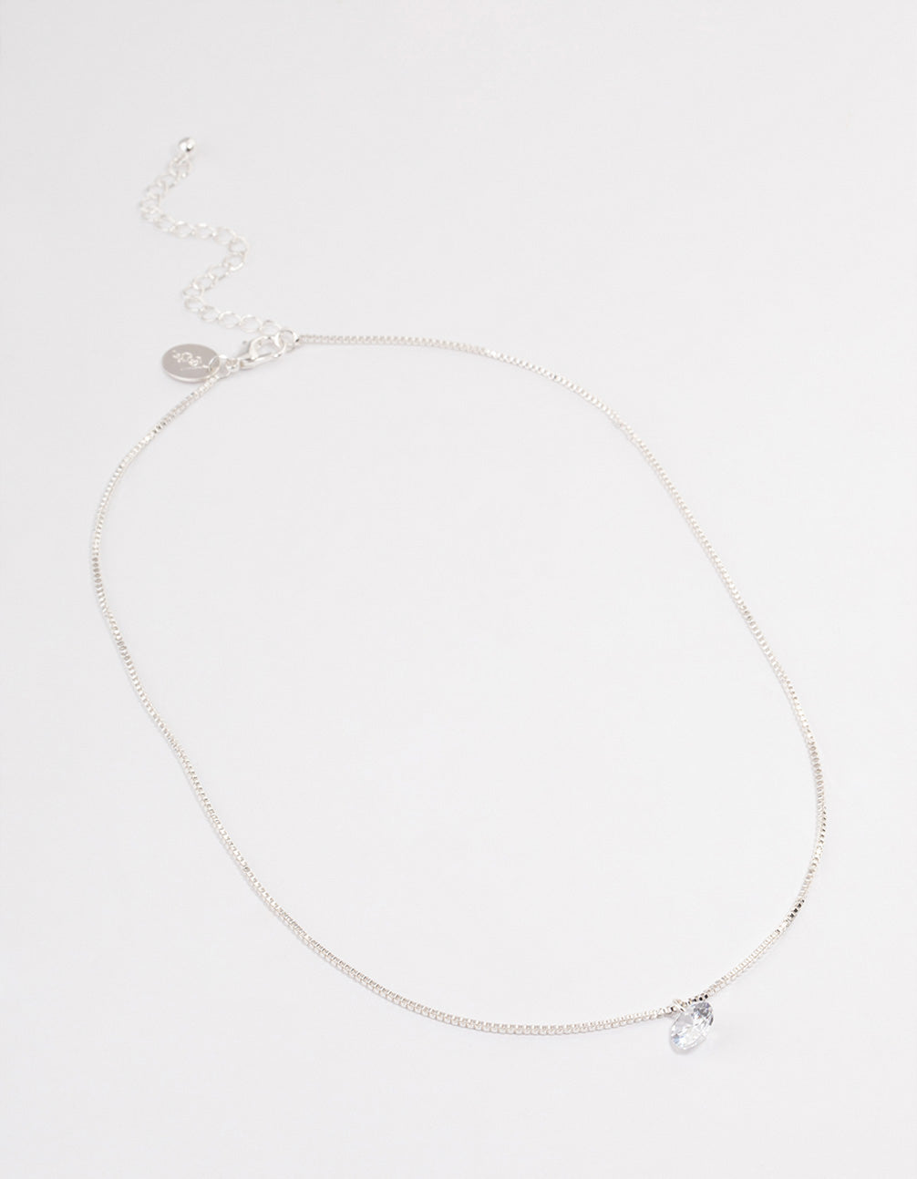 Silver Single Cubic Zirconia Box Chain Necklace Silver Single Cubic Zirconia Box Chain Necklace Silver Single Cubic Zirconia Box Chain Necklace