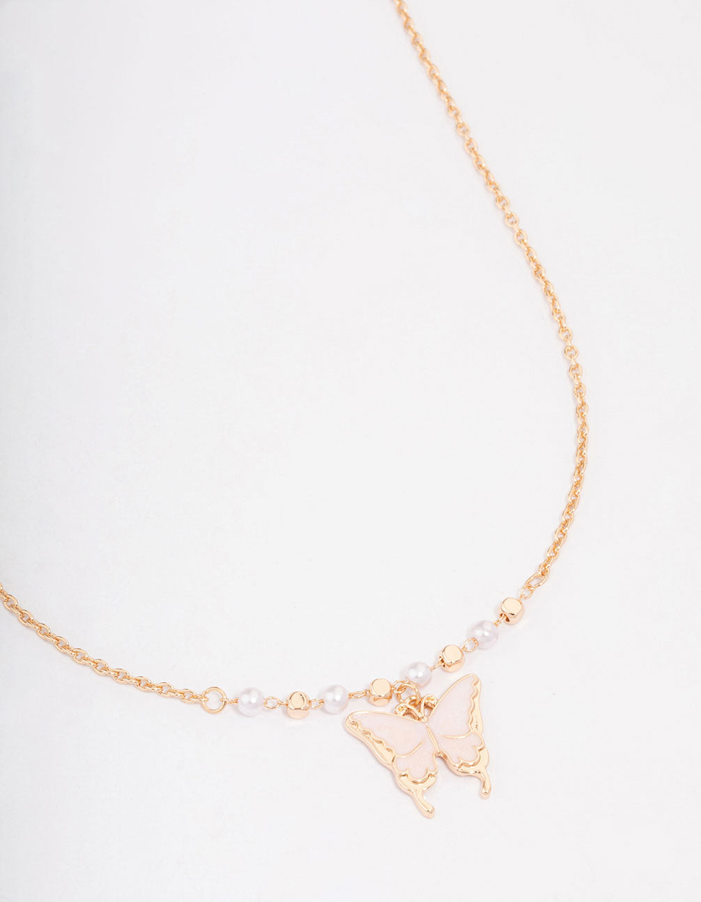 Gold Pearl Butterfly Short Necklace