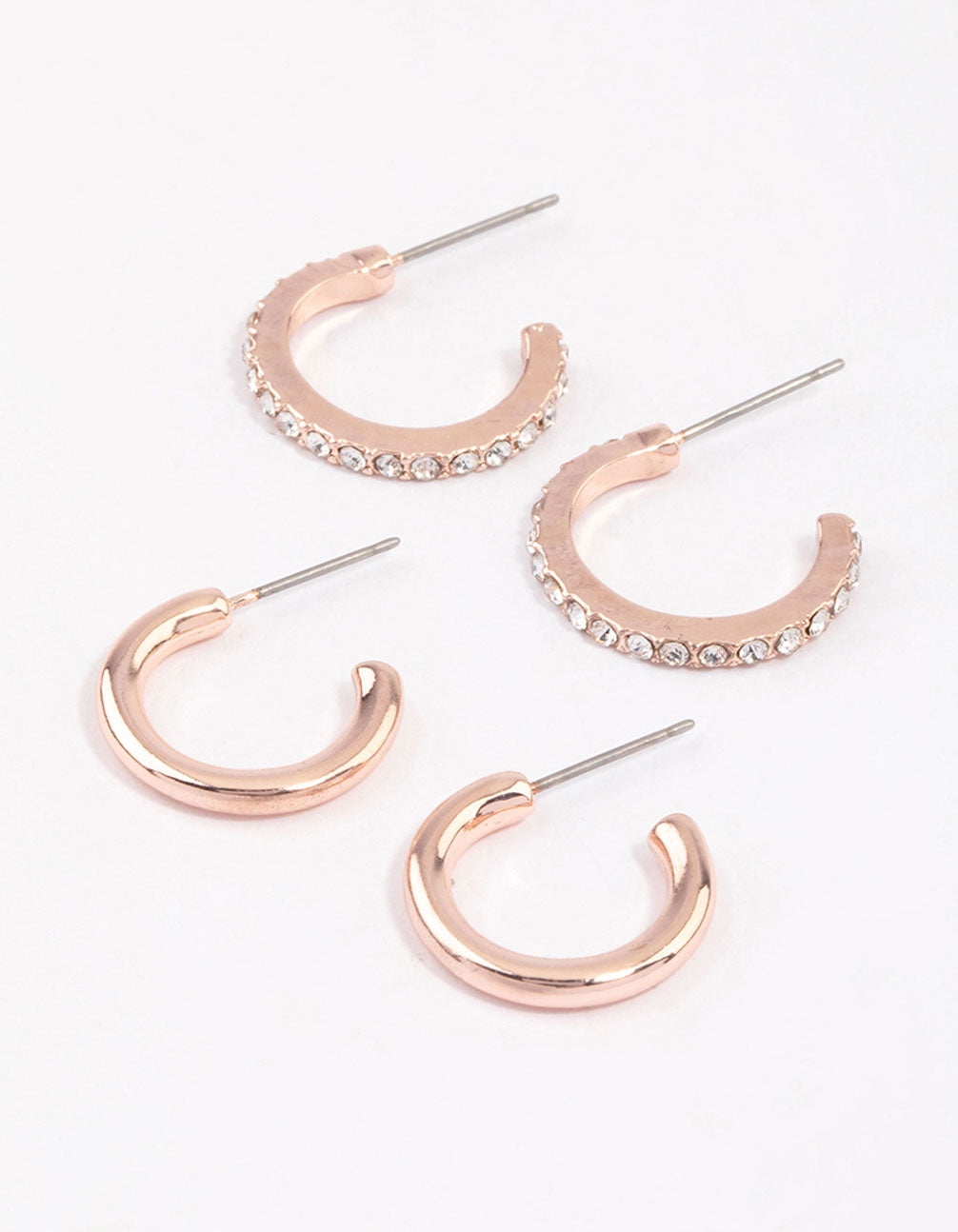 Rose Gold Plain & Diamante Huggie Earring Pack