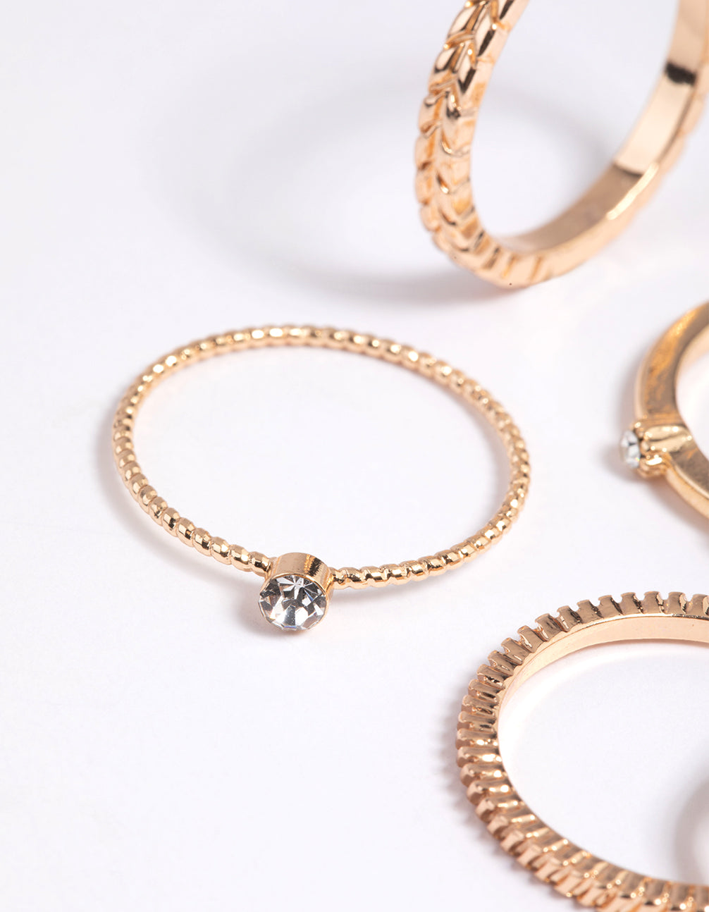 Gold Textured Diamante Ring Stack 5-Pack Gold Textured Diamante Ring Stack 5-Pack Gold Textured Diamante Ring Stack 5-Pack