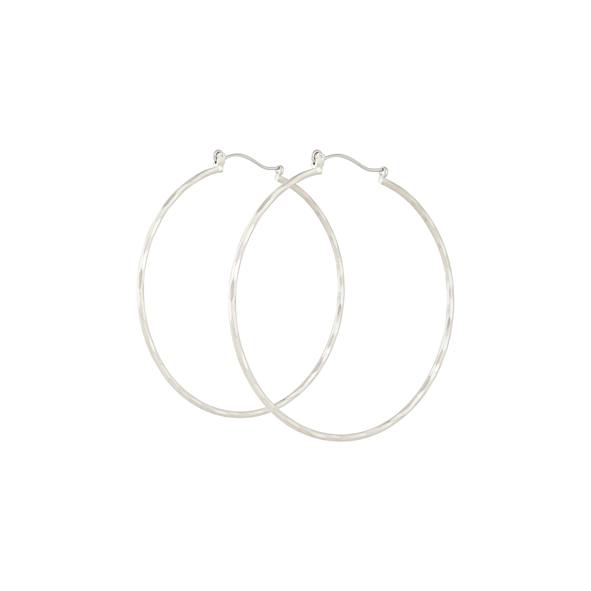 Texture is key to these silver toned hoops. The combination of classic design and diamond-cut finishing allows them to dressed up or down for any occasion.
