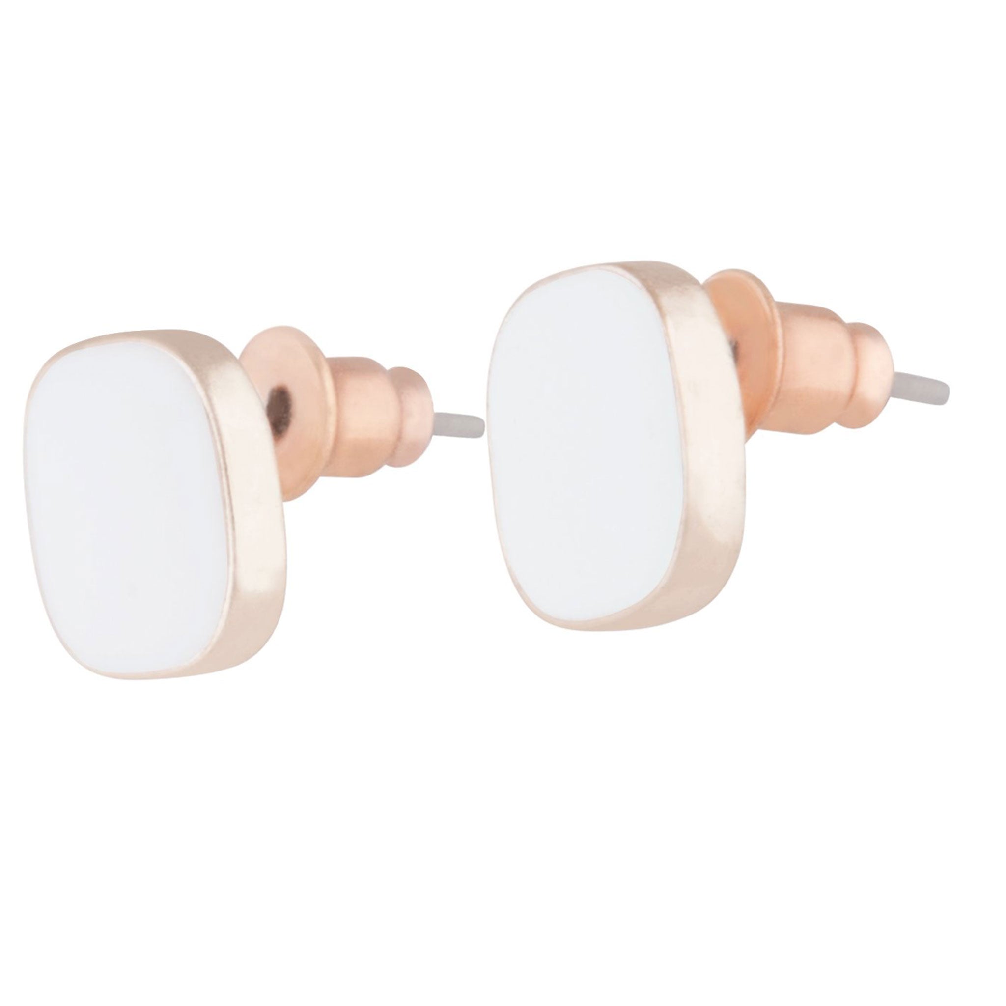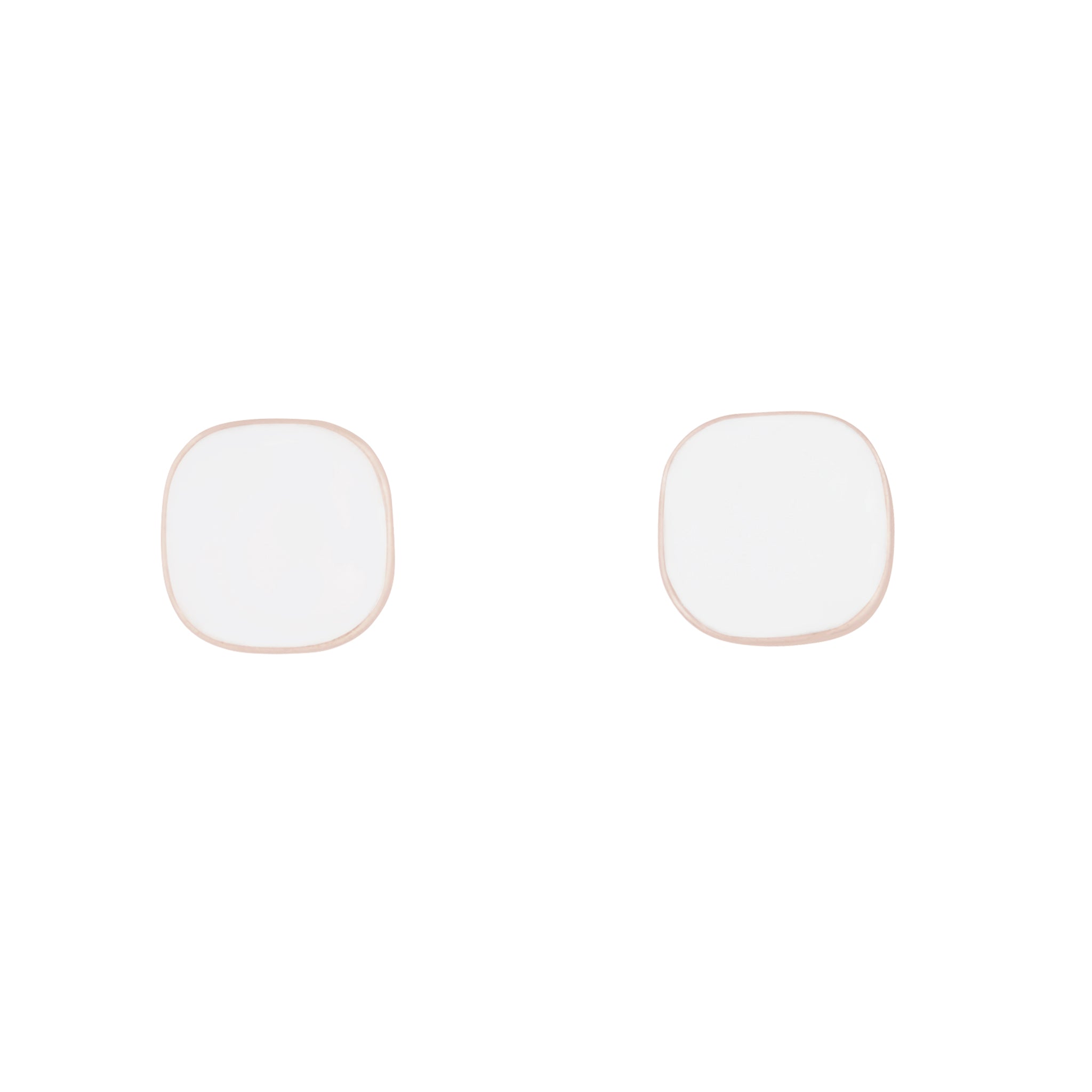 An easy to wear pair of white enamel studs on a rose gold toned setting.