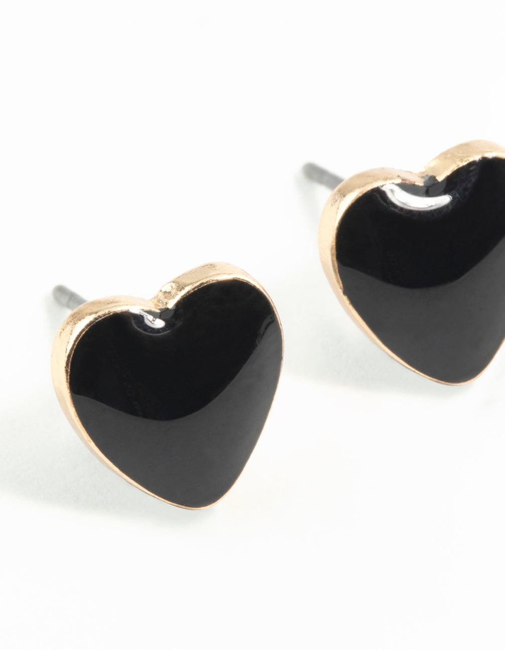These black enamel heart earrings bordered by a gold-toned setting are a wardrobe essential.