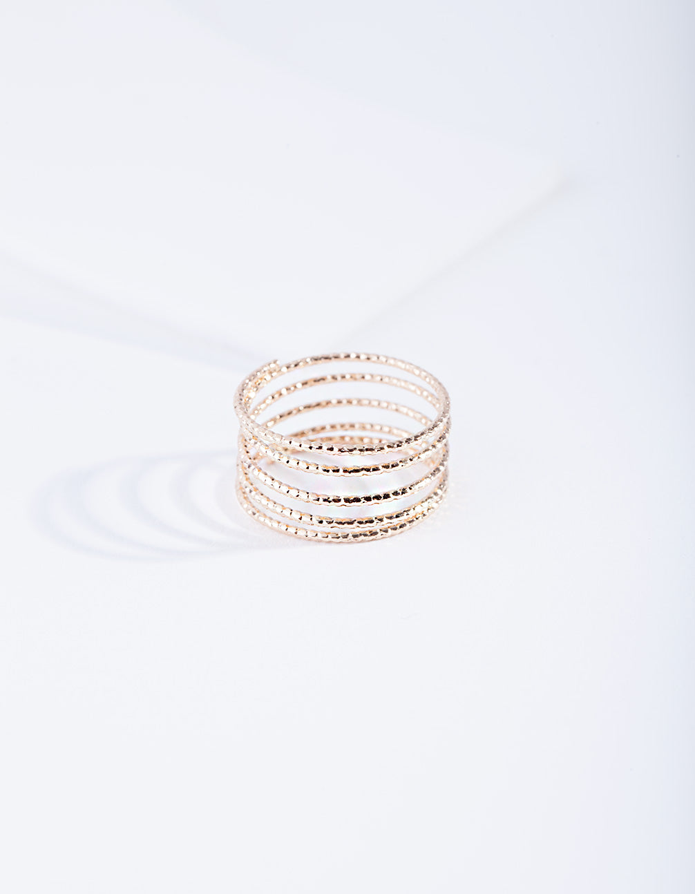 Enhance you style with this gold-toned diamond cut spiral ring.