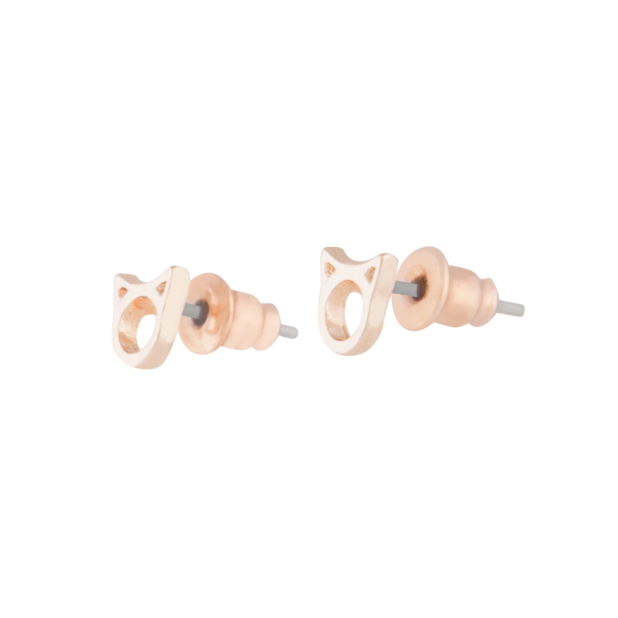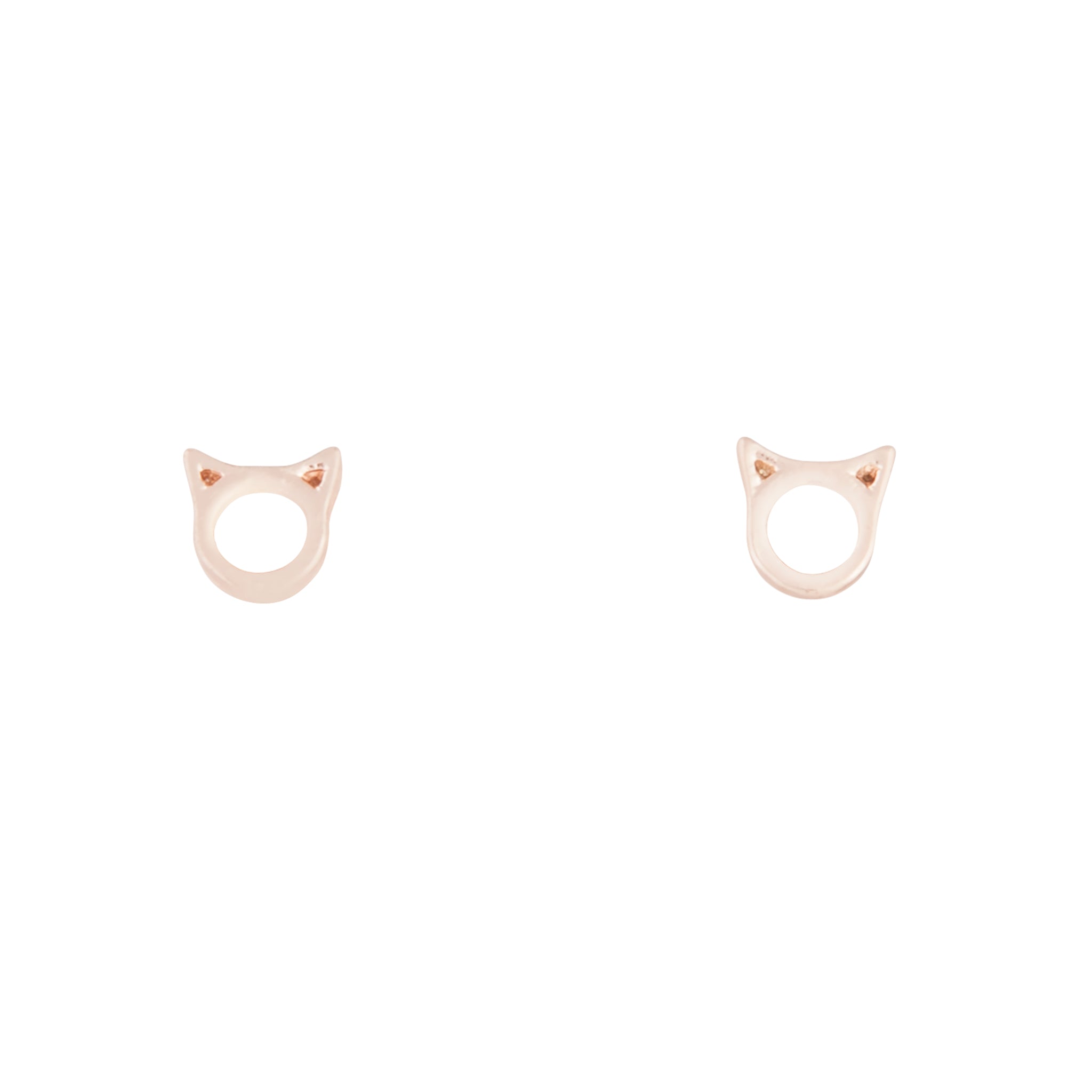 A pair of cat shaped earrings in a rose gold tone.åÊ