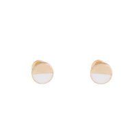 These split toned circle studs in white and gold tones make an elegant addition to your outfit.