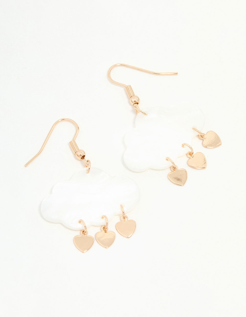 Add a touch of dreaminess to your look with these whimsical drop earrings. Featuring acrylic pearlised clouds and gold raindrops, they're perfect for a stormy yet stunning vibe.