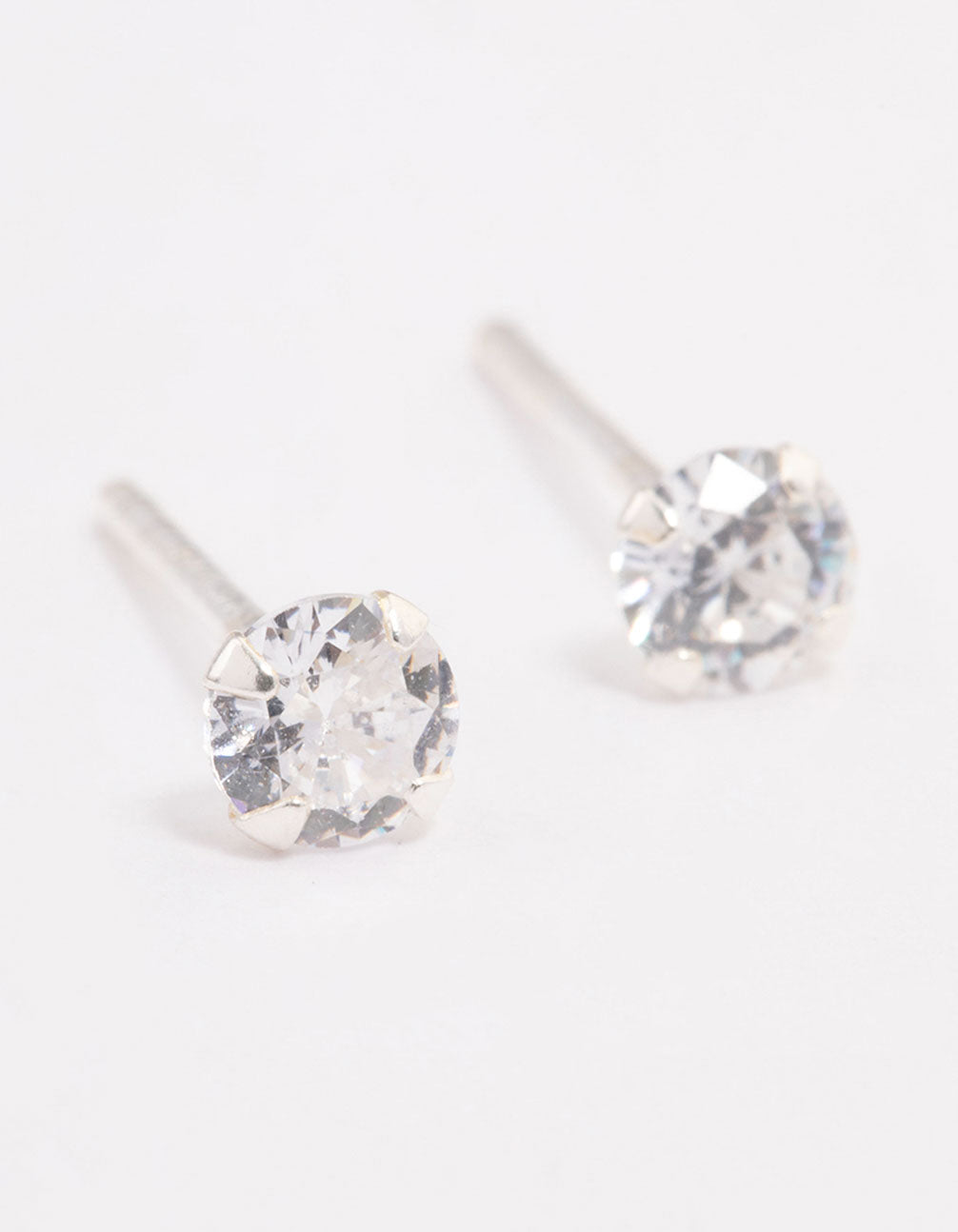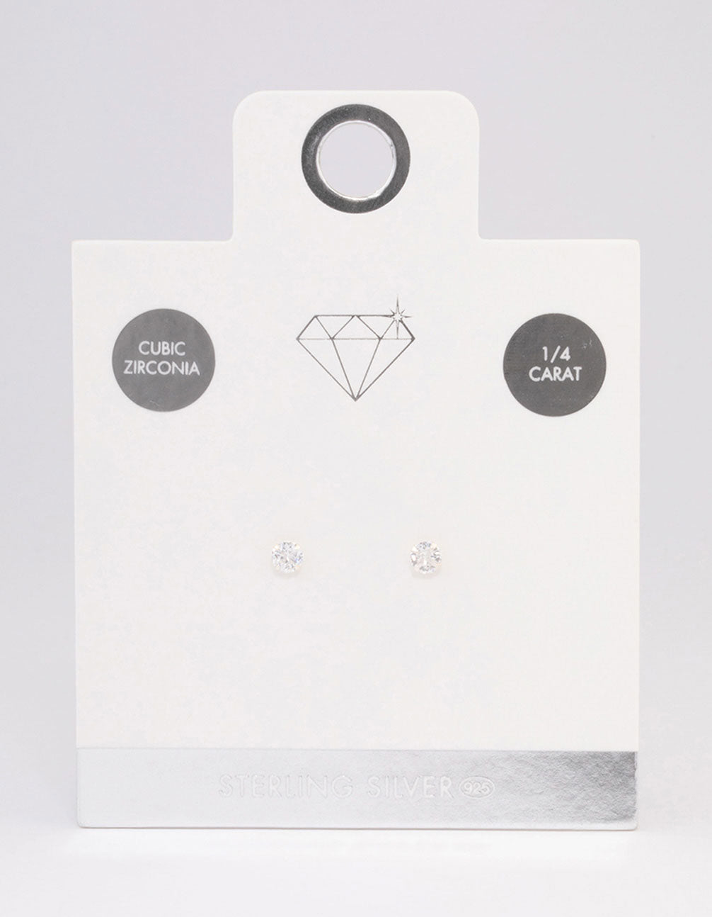 - This set of staple sterling silver stud earrings features cubic zirconia crystals for a subtle hint of glamour.
