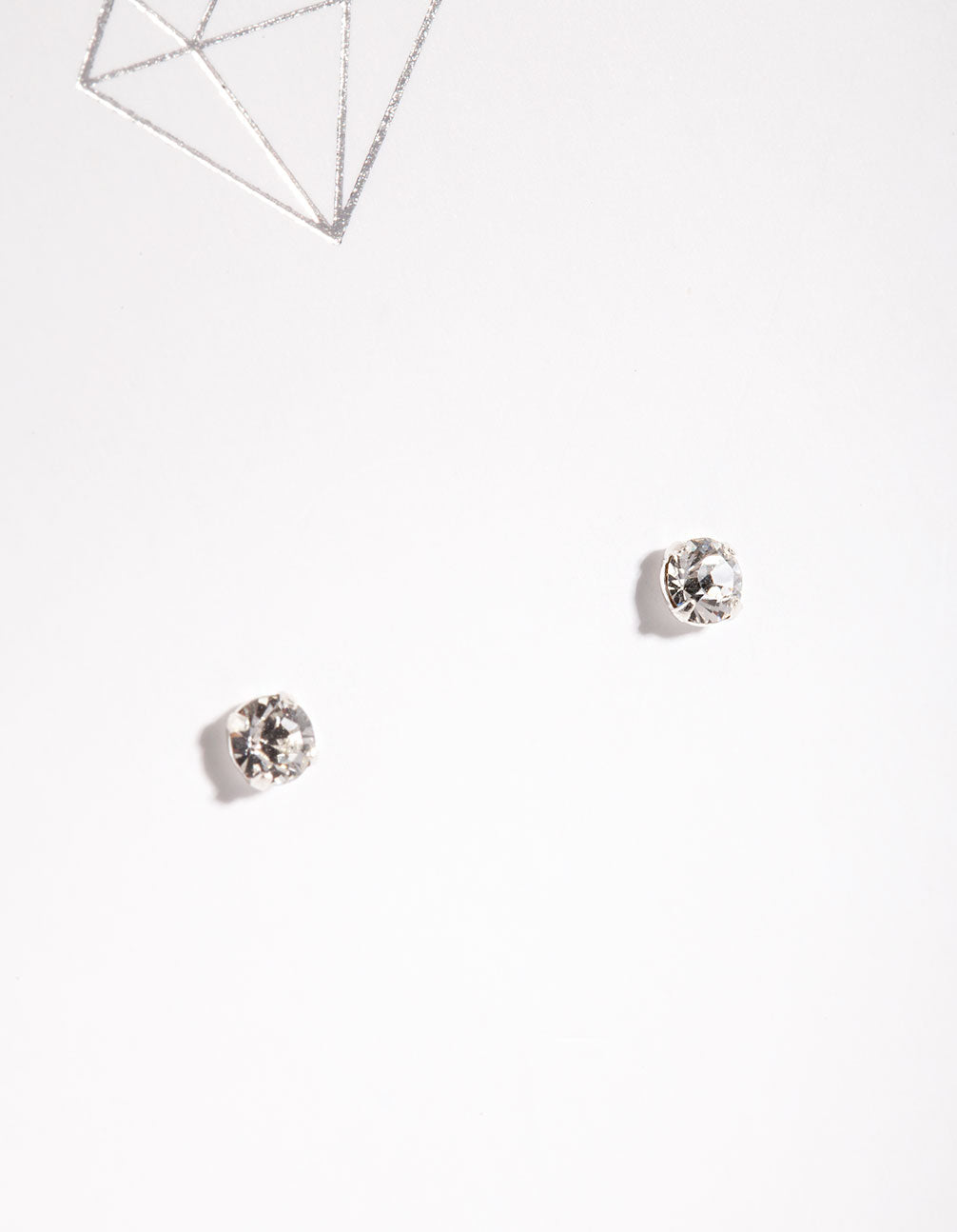 Sterling Silver Diamond Simulant 3mm Stud Earrings