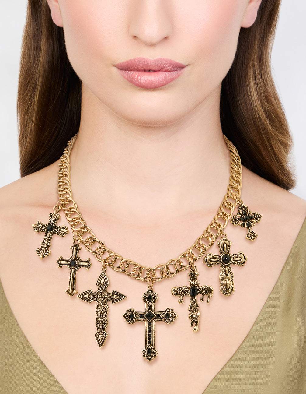 Add a bold edge to your look with this Antique Gold Black Metallic Cross Charm Necklace. This striking pendant necklace features a sleek cross charm in a metallic black finish, offset by an antique gold tone for an effortlessly cool vibe. Perfect for those who love unique jewellery, this piece is a great way to express your style. Wear it solo for a minimalist statement or layer it with your favourite chains for a stylish stacked look. Ideal for casual outings, concerts, or dressing up your go-to black outfit, this versatile necklace pairs well with everything from leather jackets to oversized tees. A must-have accessory to take your jewellery collection to the next level!