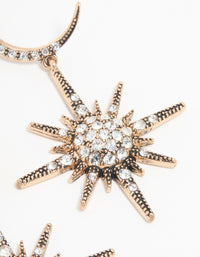 Turn heads with these Antique Gold Diamante Celestial Large Drop Earrings, a must-have for your jewellery collection. These stunning drop earrings feature a bold antique gold finish paired with dazzling diamante embellishments, creating a celestial-inspired design that's perfect for adding a touch of sparkle to any outfit. Ideal for a glam night out, a fancy dinner, or even a wedding, these earrings exude elegance with a playful twist. Pair them with a sleek black dress for maximum impact, or dress up a casual look with their statement-worthy shine. Whether you're searching for statement earrings, celestial jewellery, or vintage-inspired accessories, these beauties tick all the boxes.