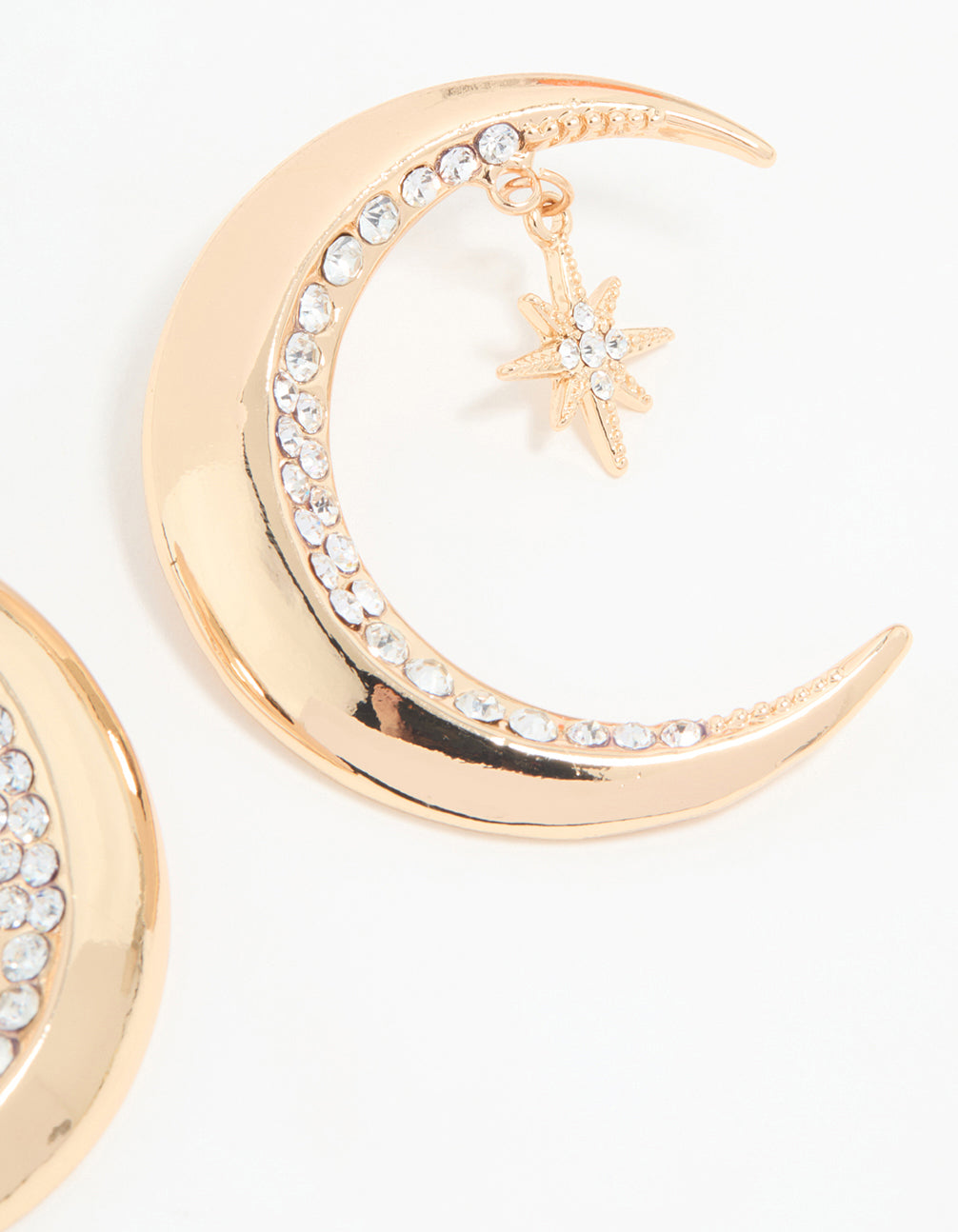 Antique Gold Diamante Celestial Moon Drop Earrings