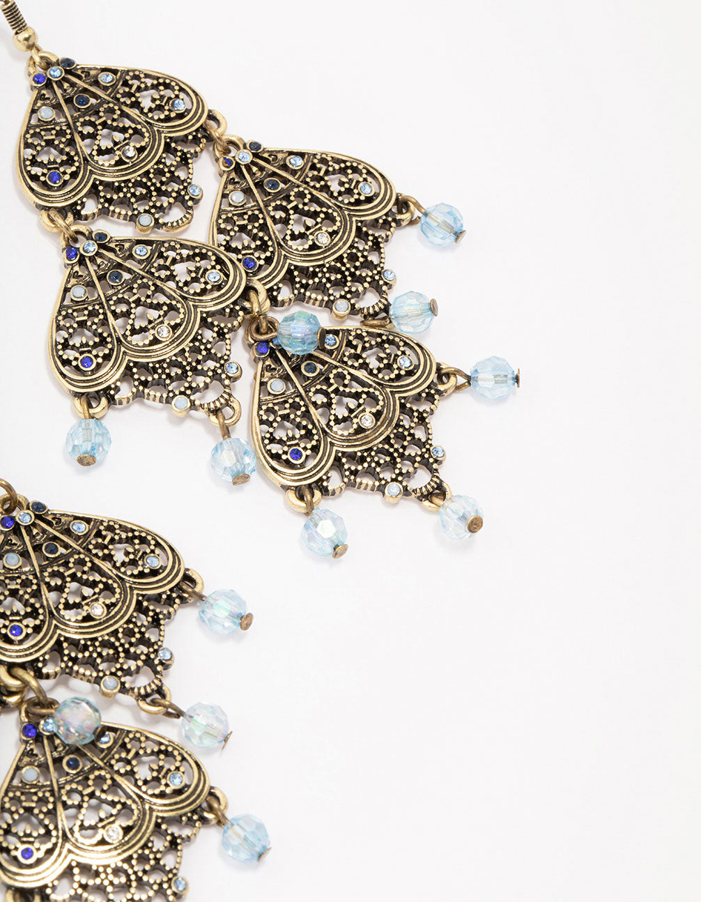 For an ornate addition to your stack, style these antique gold drop earrings. These unique statement earrings feature a collection of filigree charms and danging beads for a textural touch.
