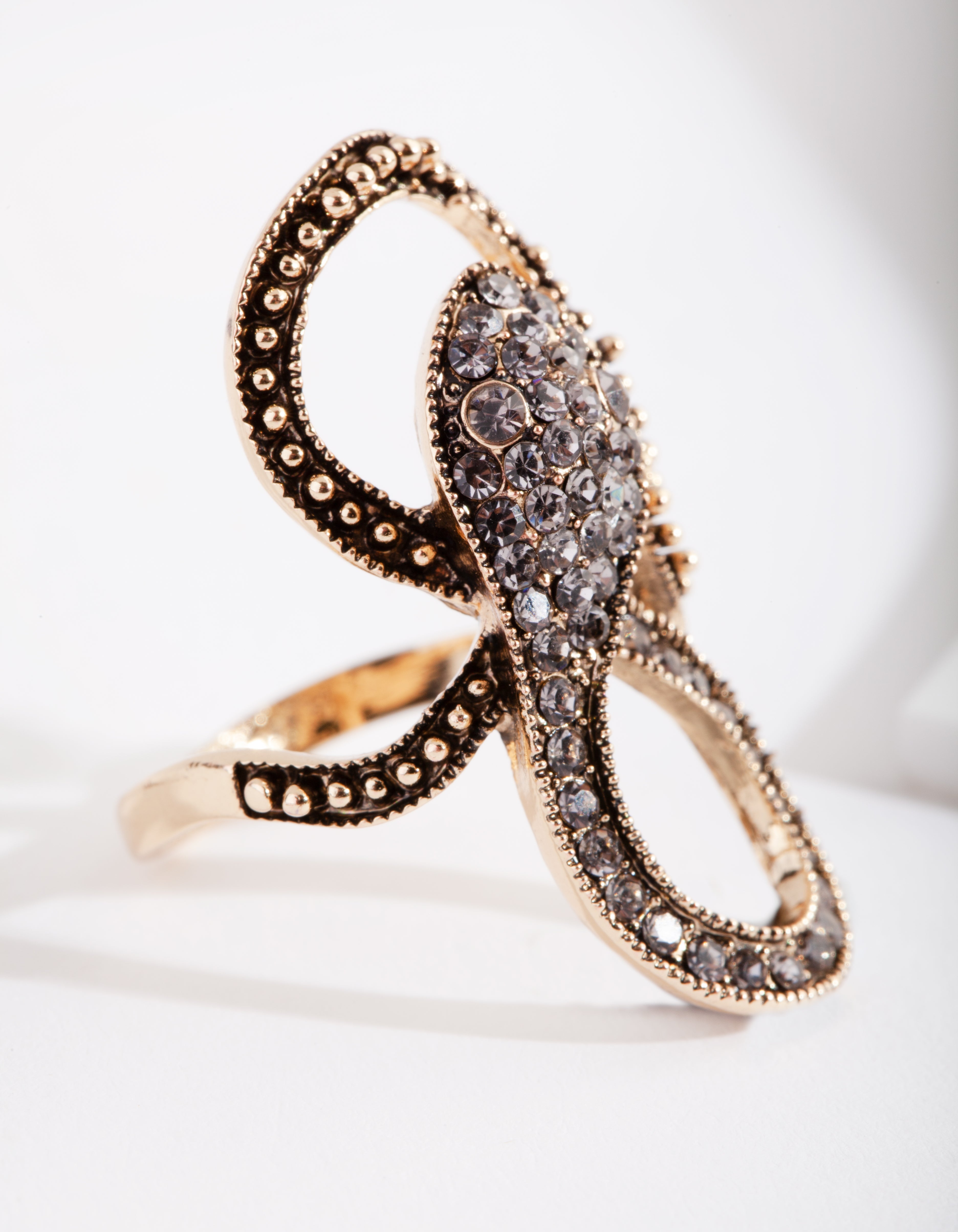 Elevate your daily ensemble with this gold-toned textured diamante snake ring.