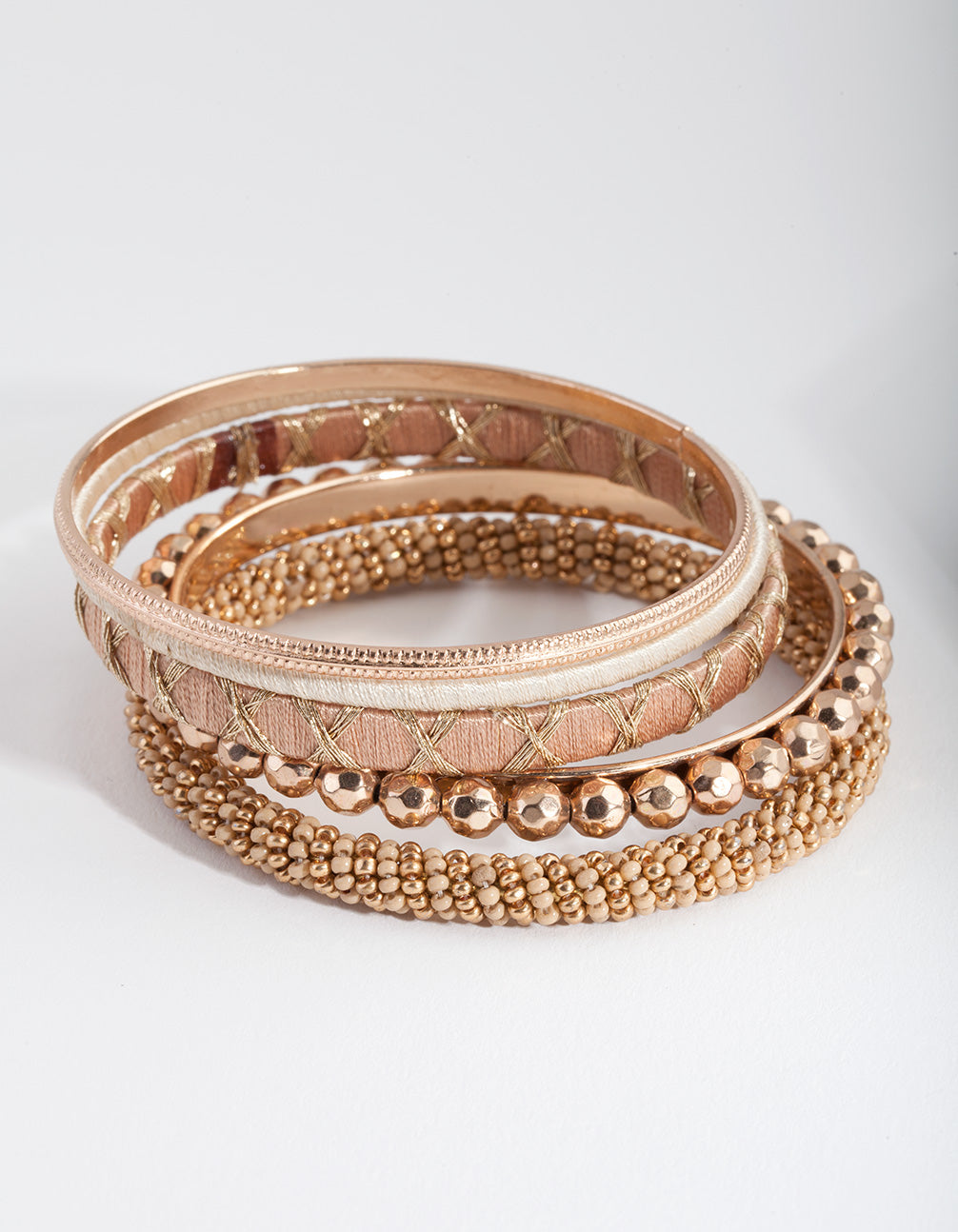 Go for gold! Add glimmering detail to your outfit with this multi pack of gold-toned beaded bangles. Style with other gold bling and warm tones for a summer finish.