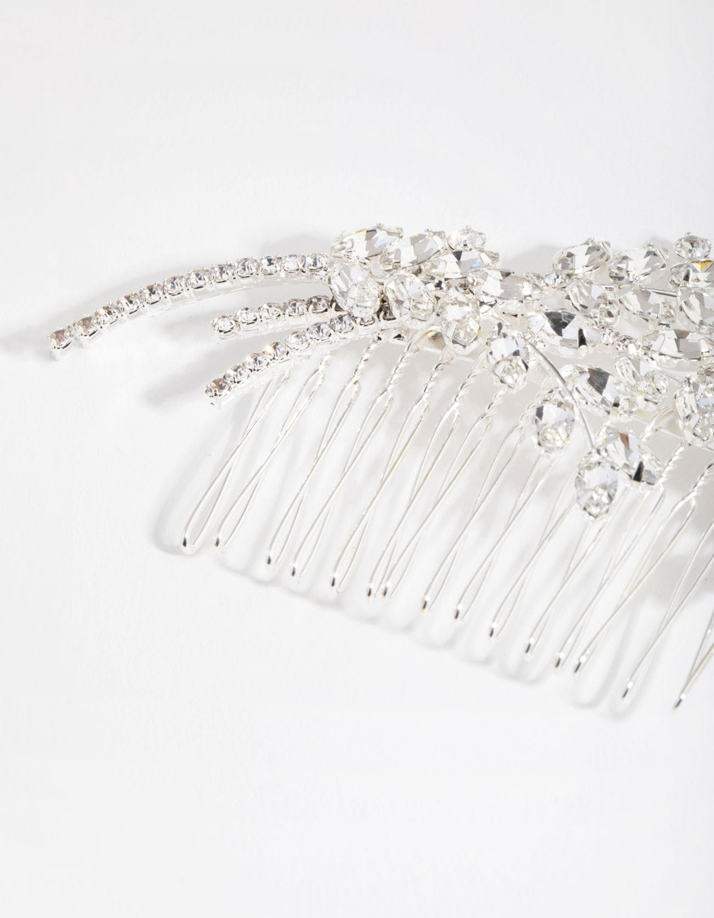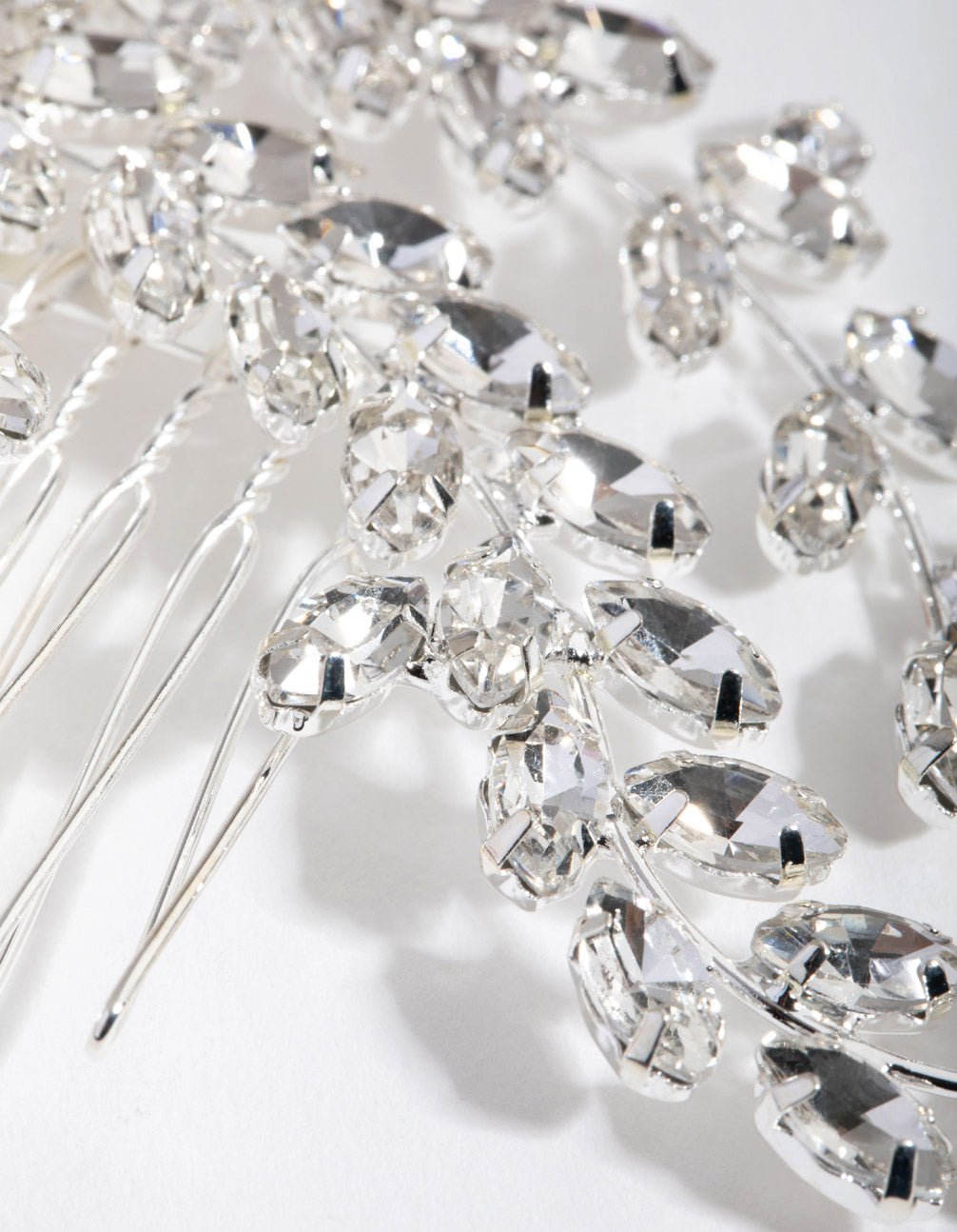 Add a touch of whimsy to your outfit with glittering hair accessories. This silver-toned comb features a leaf-like design encursted with diamantes for extra sparkle. Wear it and get noticed!