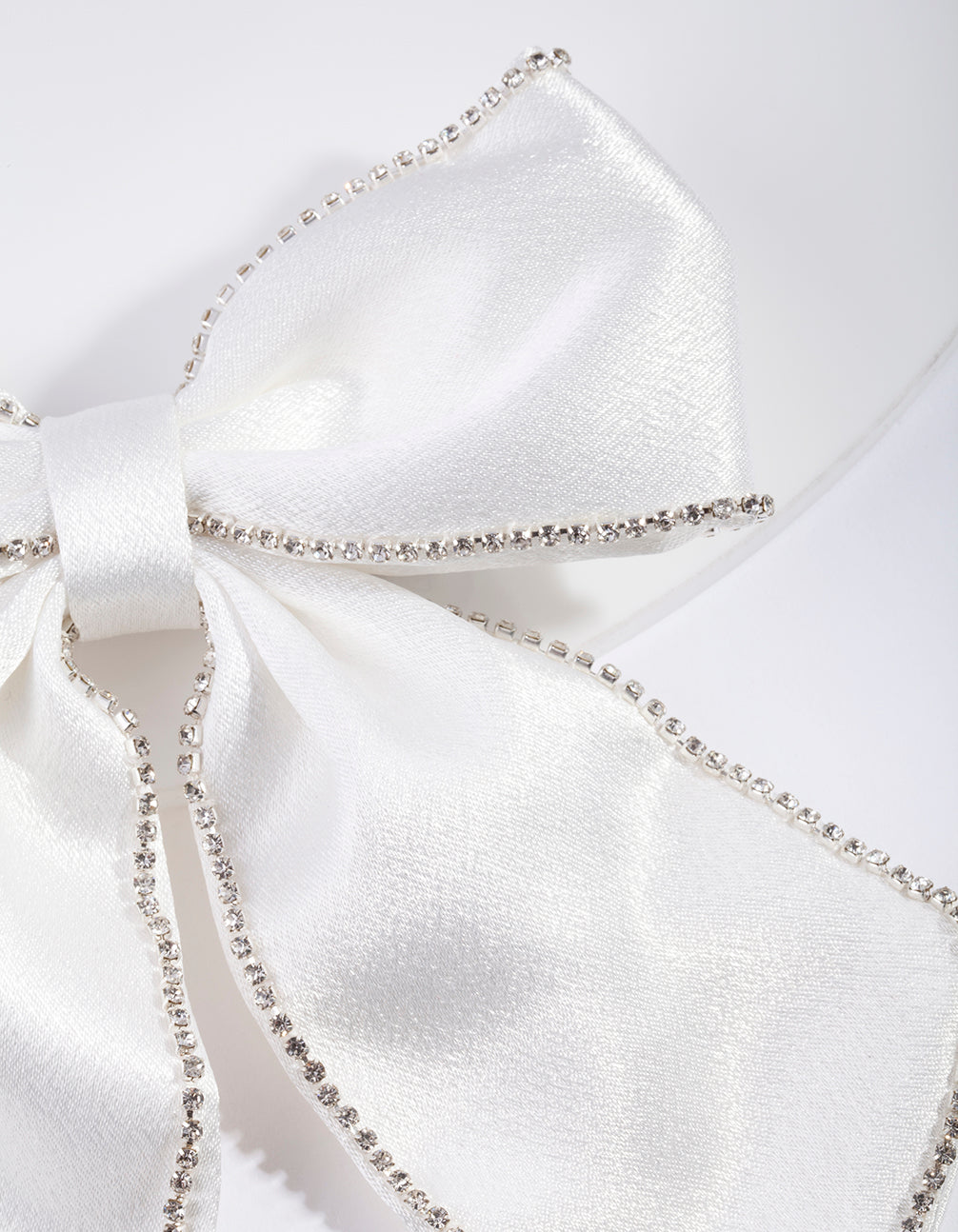 Hair accessories make the ultimate finishing touch. Complete your look with this white diamante satin bow clip.