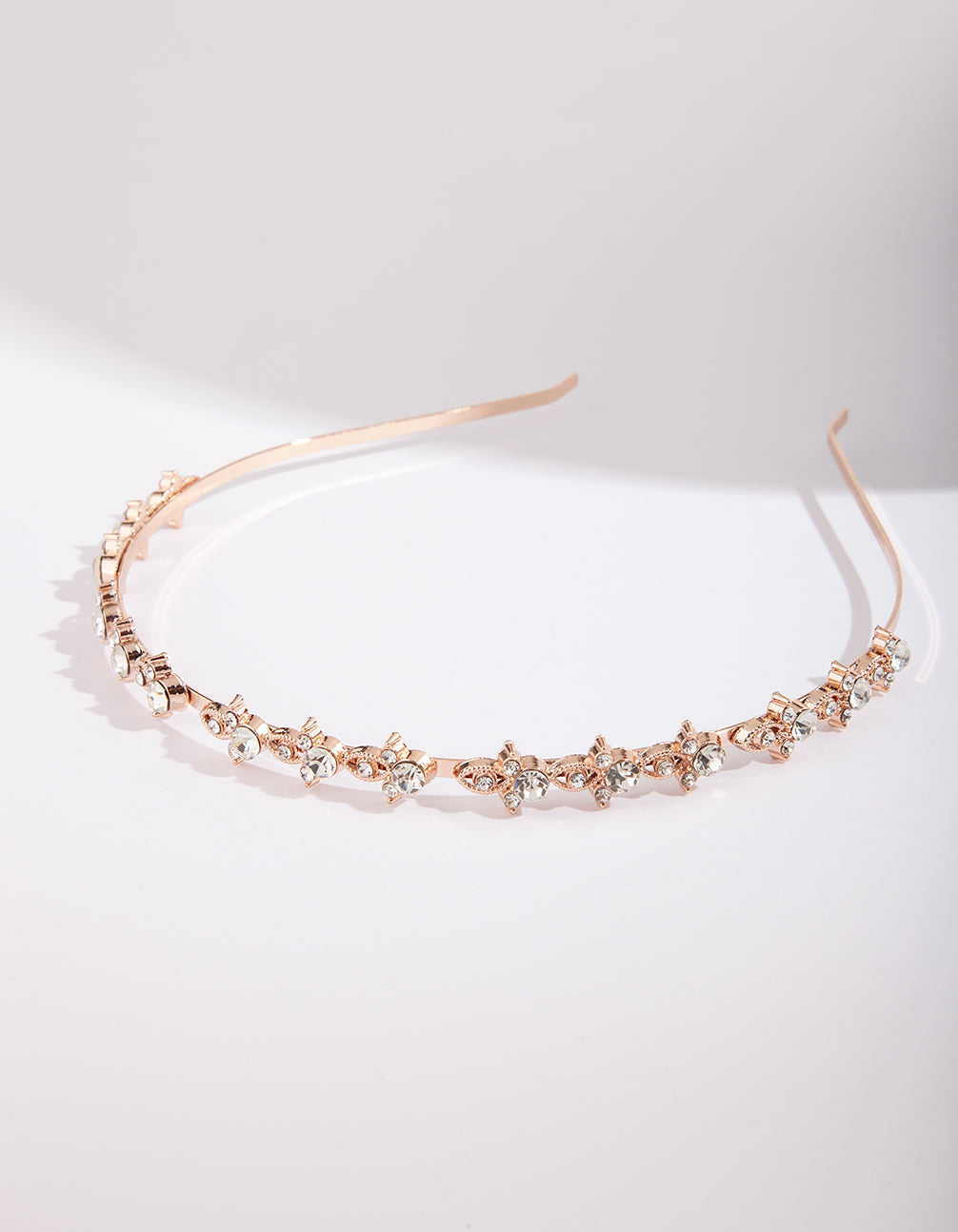 Create a glamorous look and feel like royalty with a jewelled headpiece. This headband boasts a mini flower diamante design on a rose gold-toned setting, making it perfect for your upcoming event! Whether you are heading to brunch, a wedding or just wanting to look glamorous for a party, this headband is the perfect way to complete your ensemble.