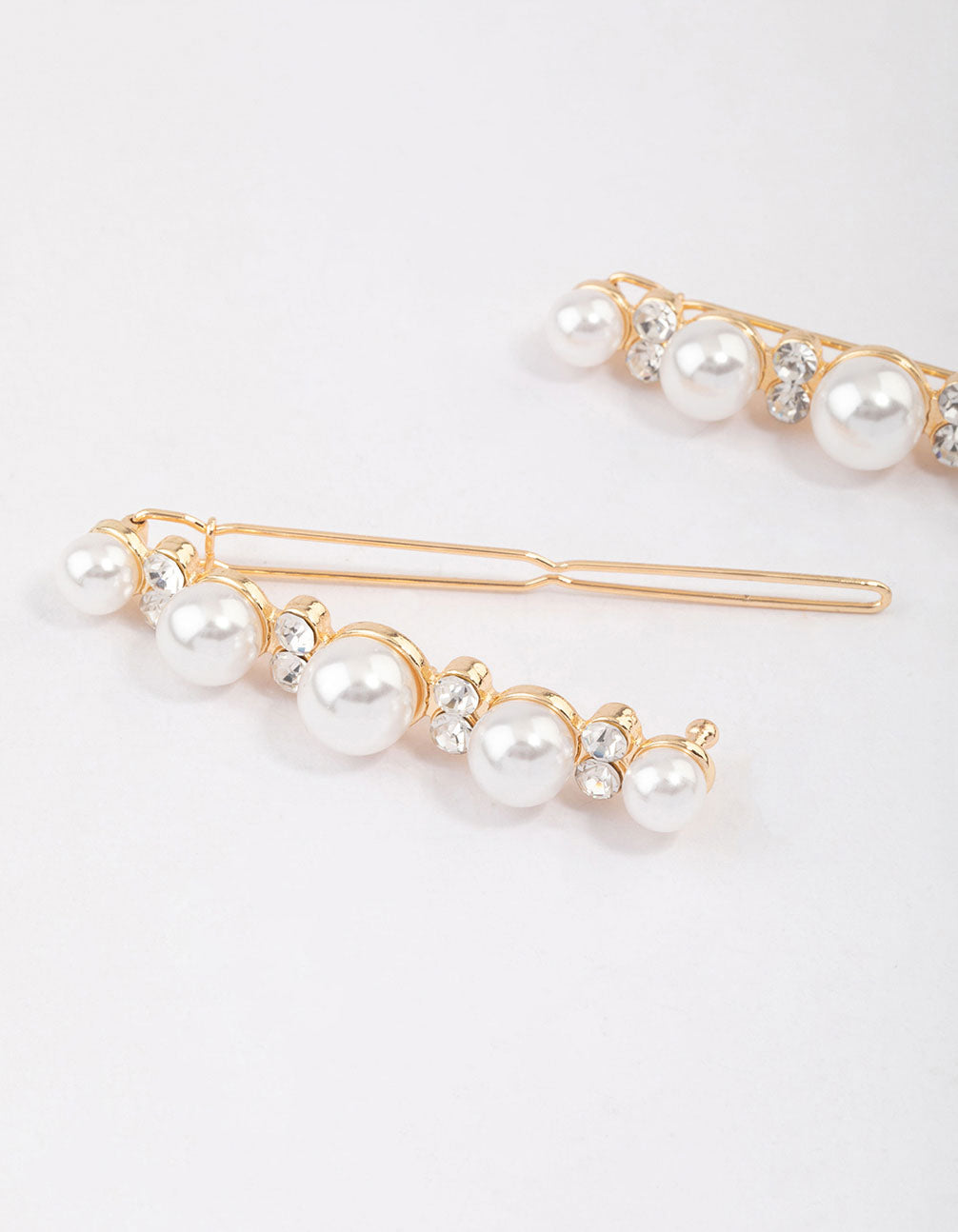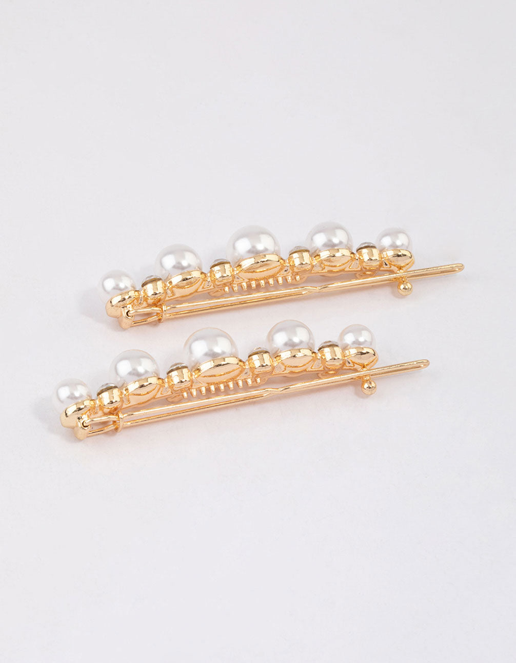 - Pair this two-pack of gold and pearl embellished hair clips with accessories from our Pearl Collection for a sophisticated and cohesive finish.
