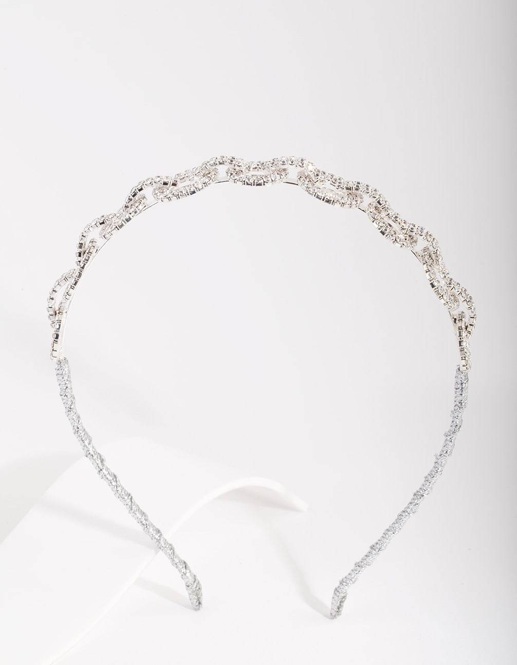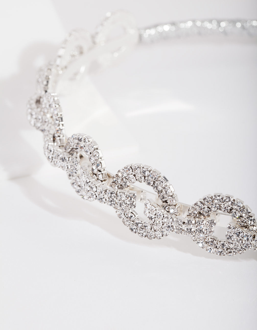 Create a glamorous look and feel like royalty with a jewelled headpiece. This headband a silver diamante chain link design making it perfect for your upcoming event! Whether you are heading to brunch, a wedding or just wanting to look glamorous for a party, this headband is the perfect way to complete your ensemble.