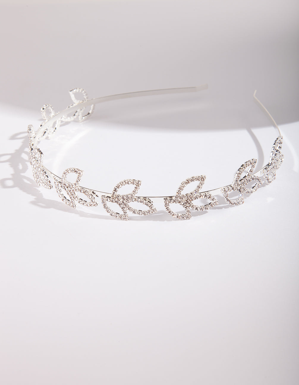 Create a glamorous look and feel like royalty with a jewelled headpiece. This headband features a diamante embellished leaf style in a silver tone, making it perfect for your upcoming event! Whether you are heading to brunch, a wedding or just wanting to look glamorous for a party, this headband is the perfect way to complete your ensemble.