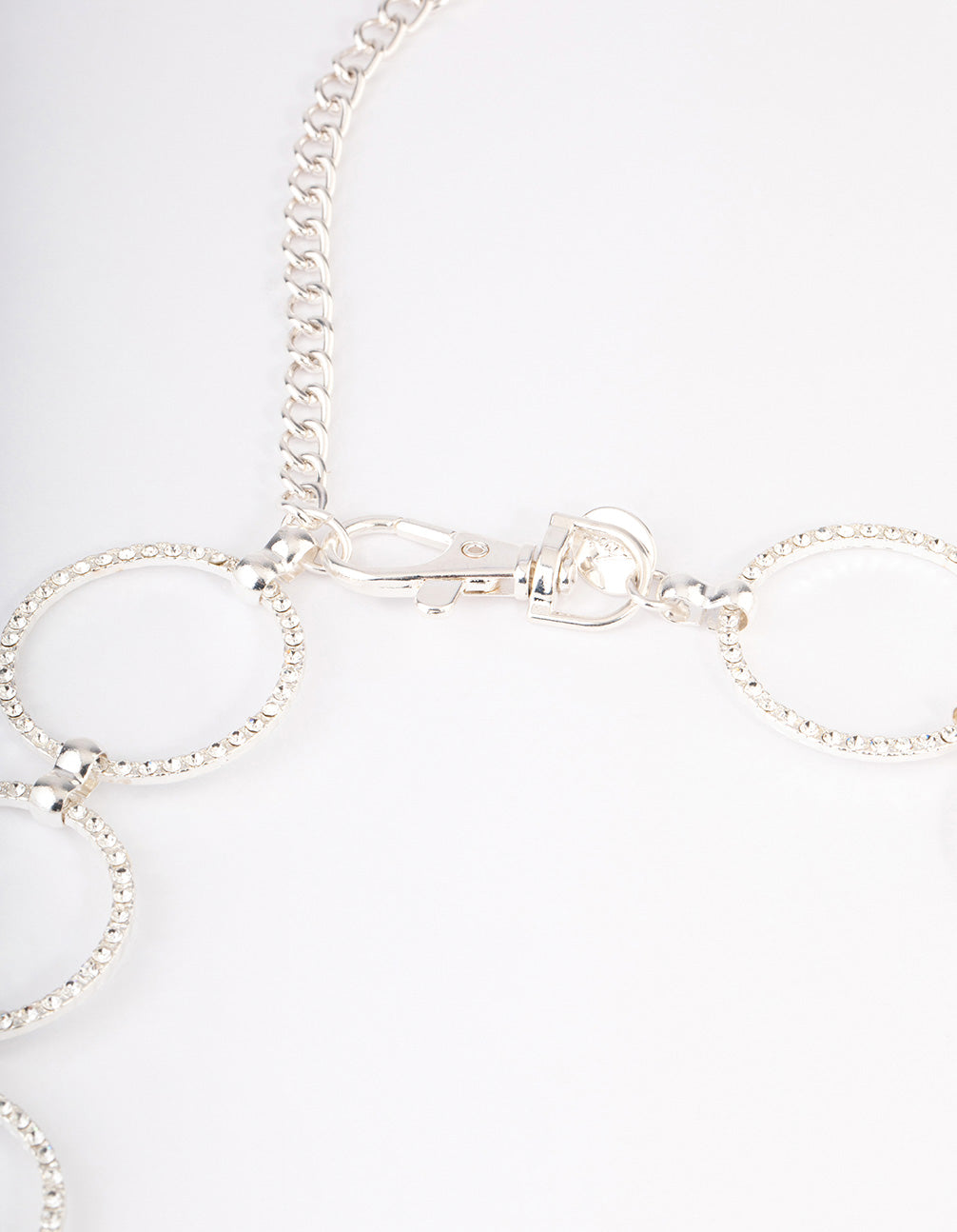 Complete your outfit with a fashion statement! Our collection of embellished belts are a simple but effective way to add interest to your outfit. Style this silver, diamante circle belt with diamante earrings for a luxe finish.