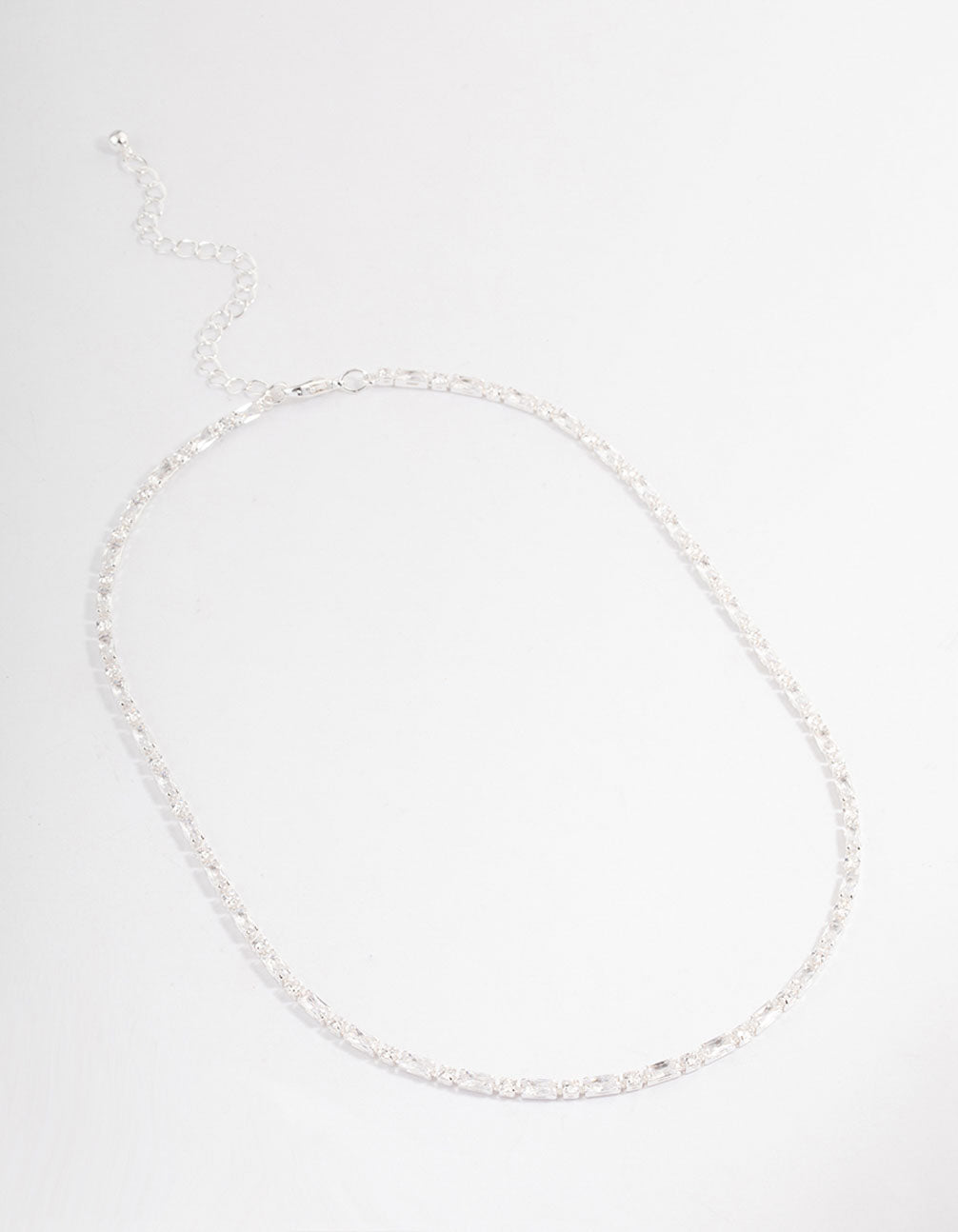 Silver Plated Cubic Zirconia Round & Baguette Tennis Necklace