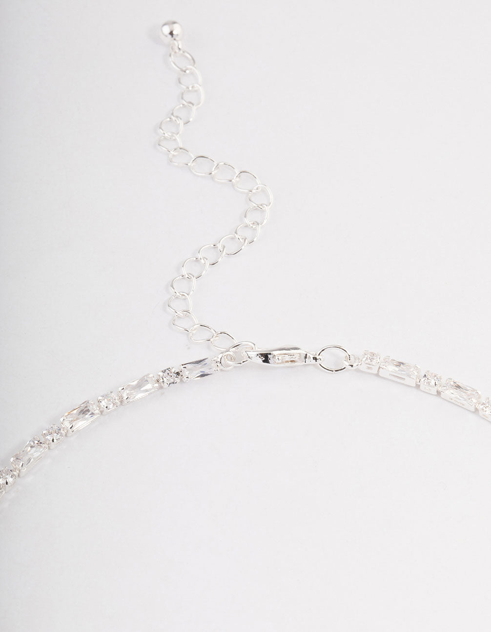 - Pair this Silver Plated Cubic Zirconia Round & Baguette Necklace with a pair of timeless huggie hoops for a signature look.