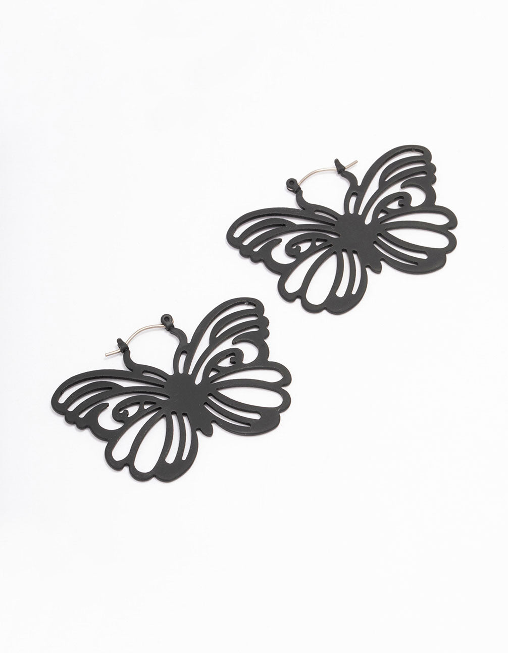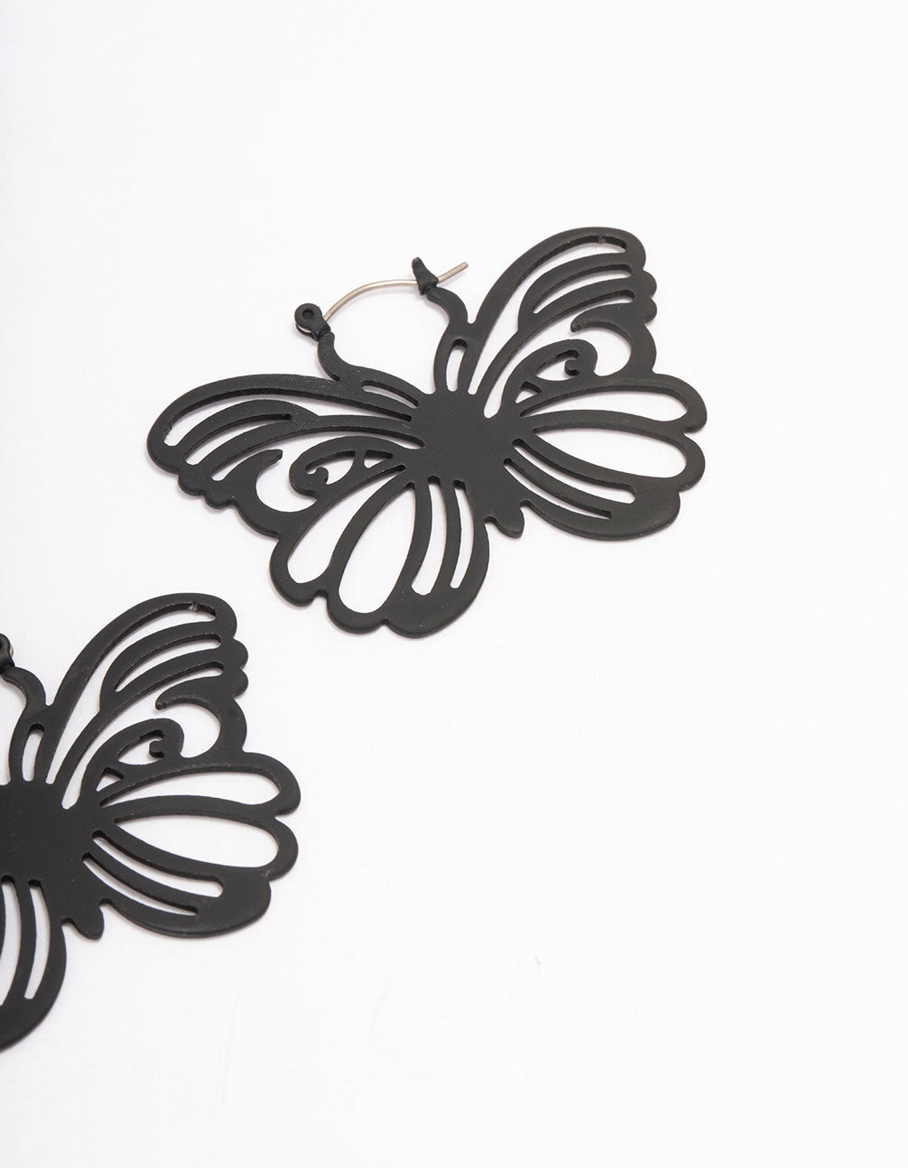 Black Butterfly Pattern Hoop Earrings