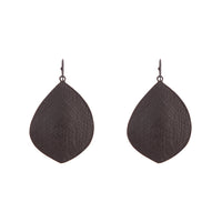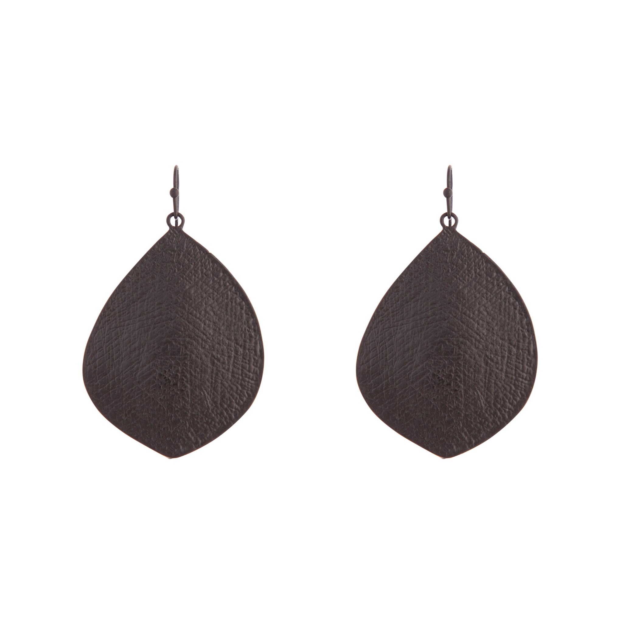 Statement earrings have become the easiest way to switch up any wardrobe. This stunning pair of black textured earrings feature a tear shaped leaf drop design. Pair with a simple white tee and a fun lip colour.