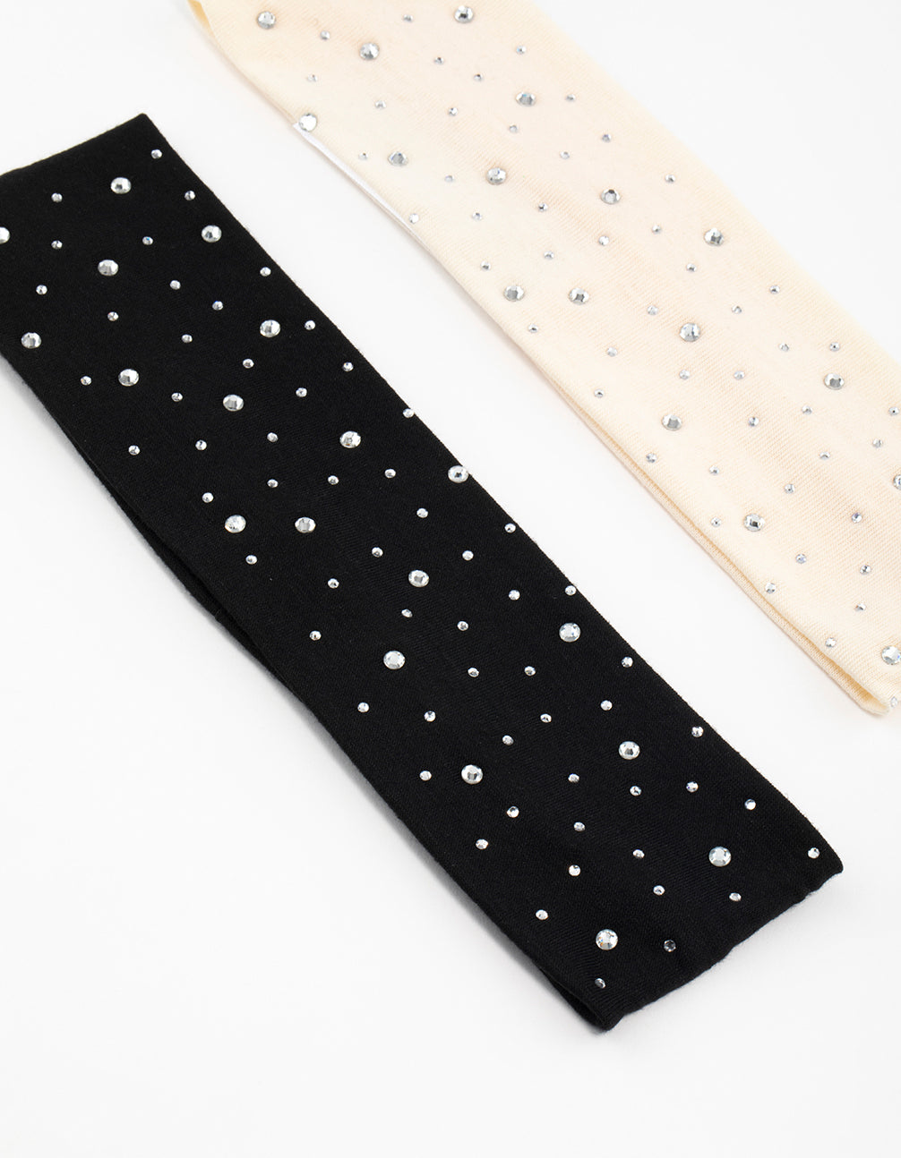 Black & Cream Fabric Diamante Stretch Headbands 2-Pack
