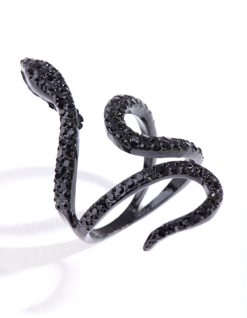 A fashion ring makes the ultimate finishing touch to your daily looks. Stack them up and make an impact, or wear alone for a more refined look. This ring features a black snake diamante design.
