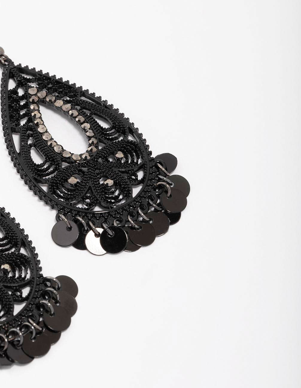 For an ornate addition to your look, style these unique drop earrings. These statement earrings feature a black setting and collection of small beads for a textural touch.