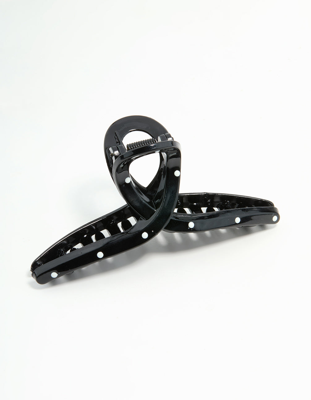 Make a chic statement with the Black & White Polka Dot Loop Claw Clip! This trendy claw clips adds a playful touch to any look. Perfect for taming unruly locks, wear it to class, out with friends, or to brunch.