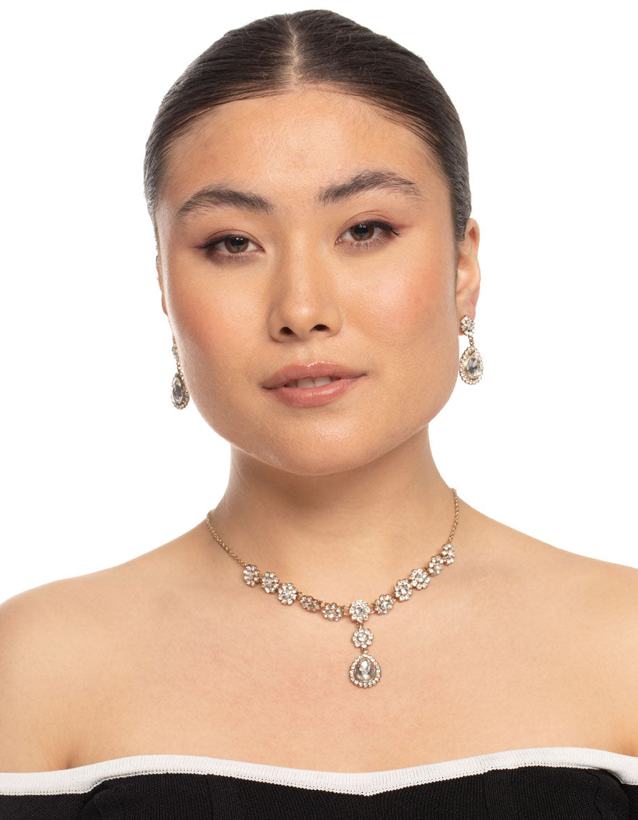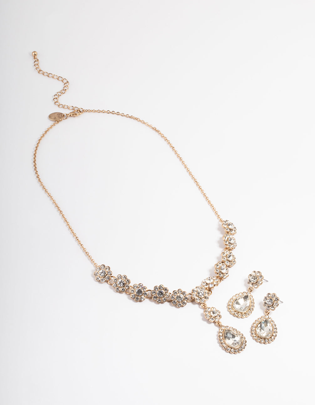 You can never have too many unique, jewellery sets! Elevate your look with our antique gold-toned, floral earring and necklace set - encursted with diamantes for an effortlessly luxe finish.