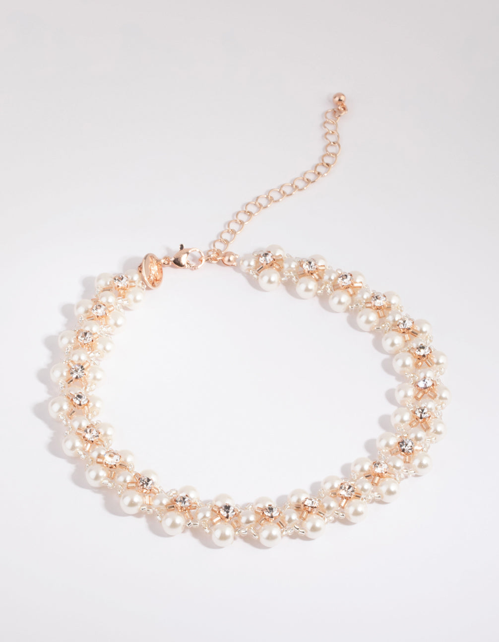 Rose Gold Diamante & Pearl Choker