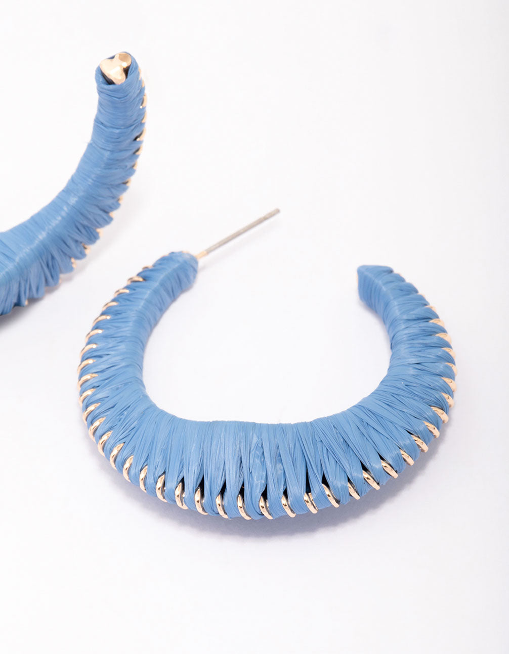 These on-trend blue medium fabric hoop earrings feature a C-shaped design in a muted blue fabric. Made of woven fabric, these lightweight earrings add a pop of colour and bohemian flair to any look.