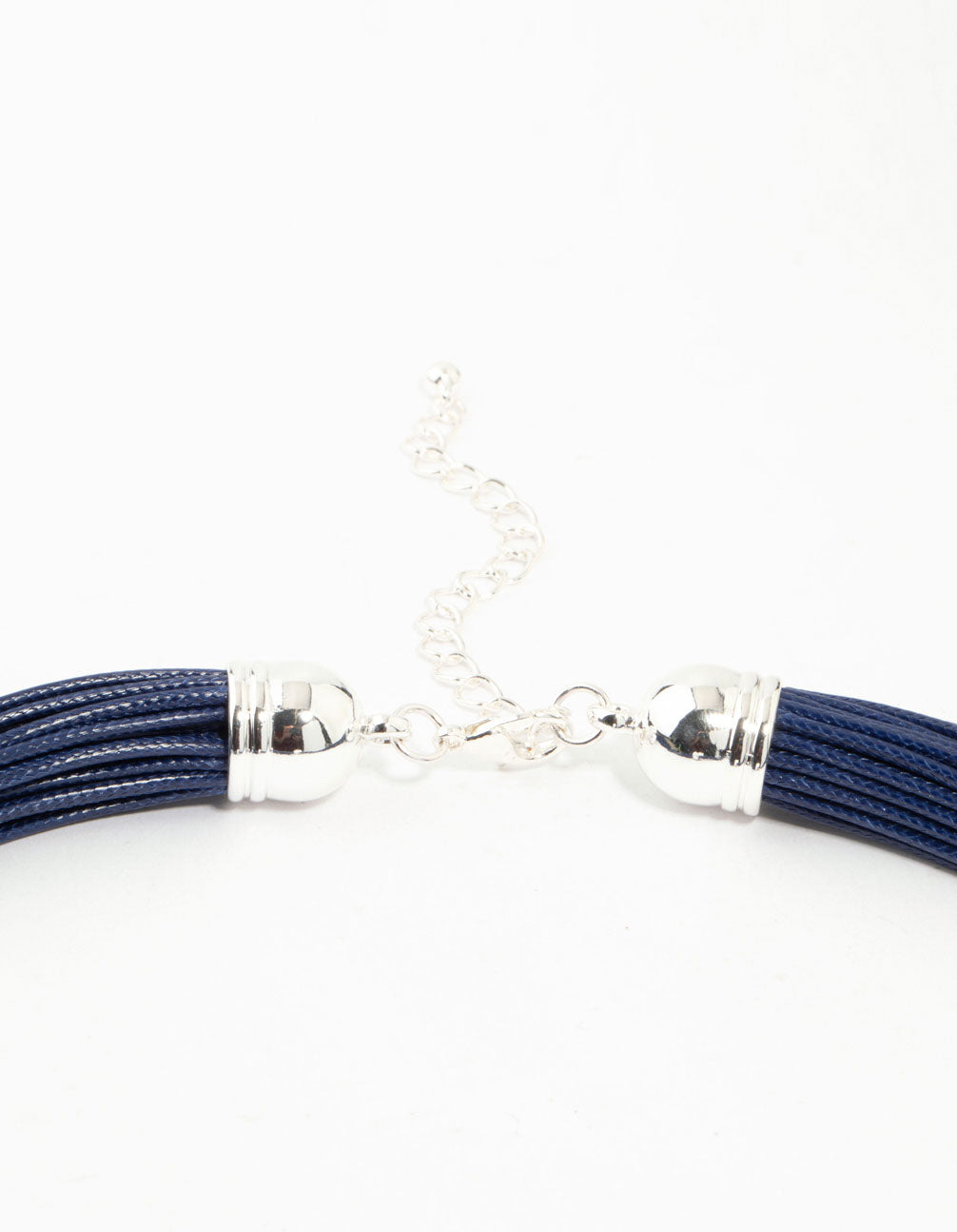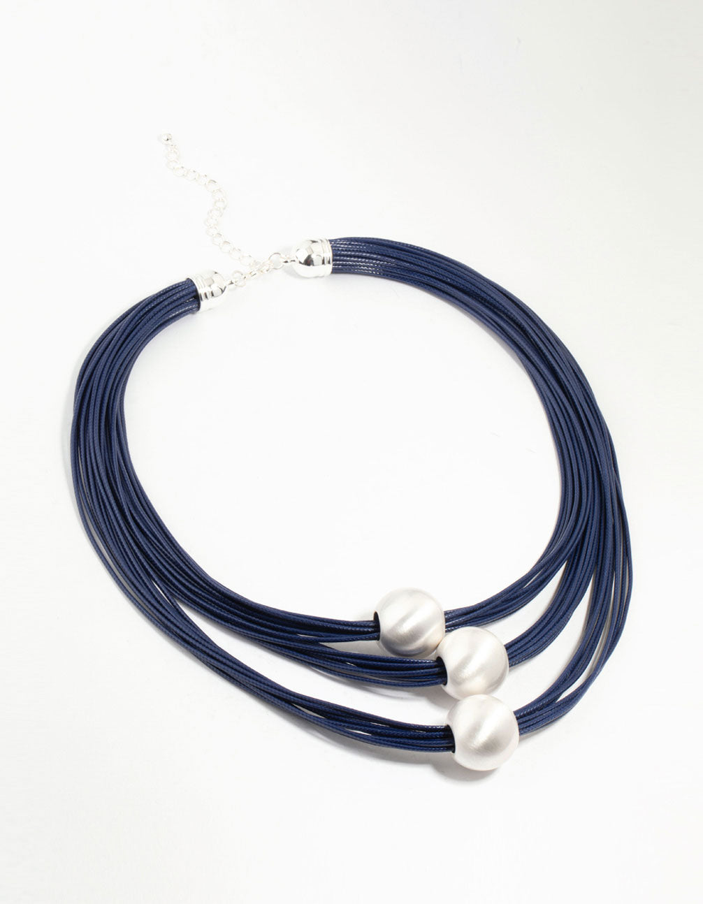 Blue Wax Cord Trio Silver Ball Necklace