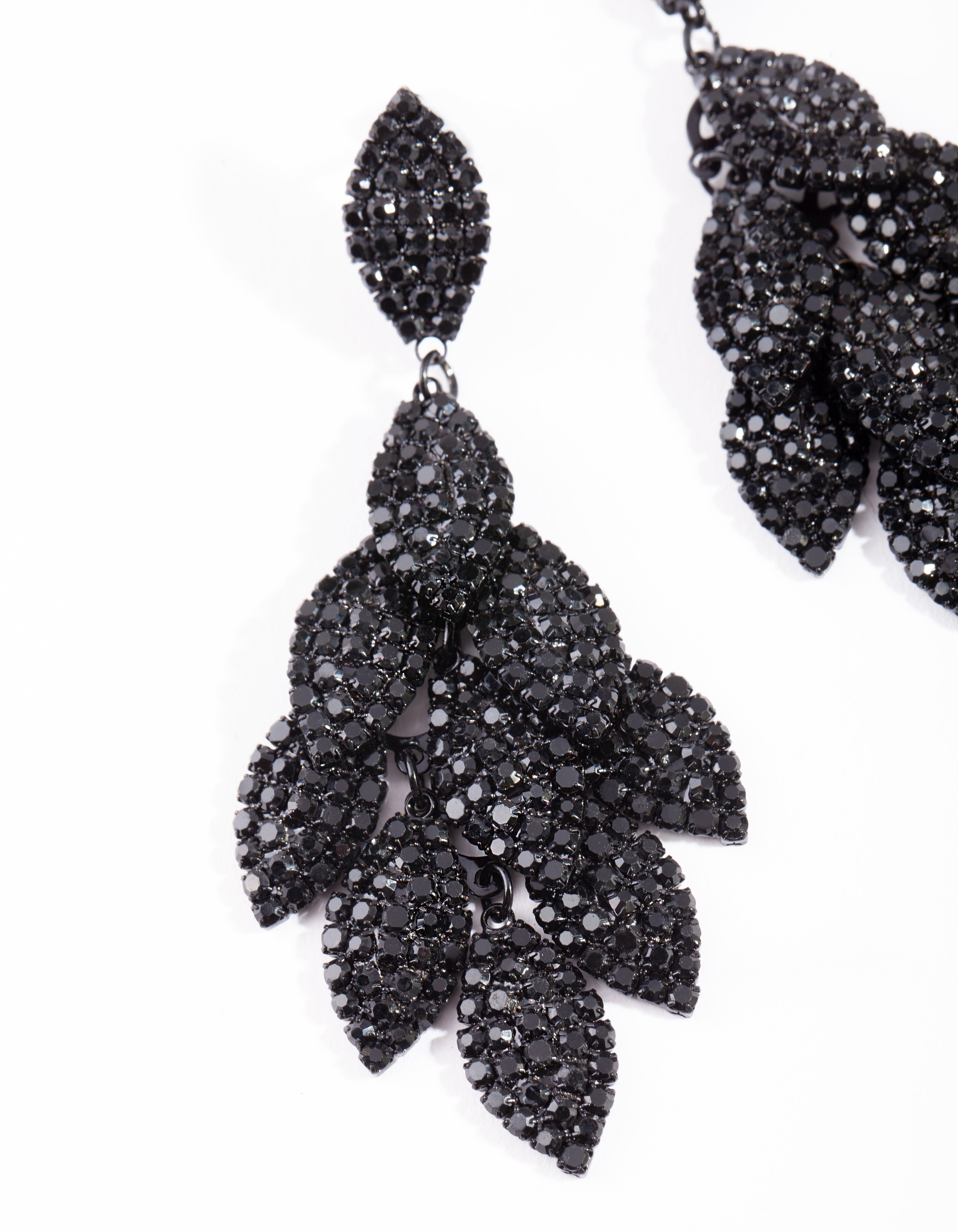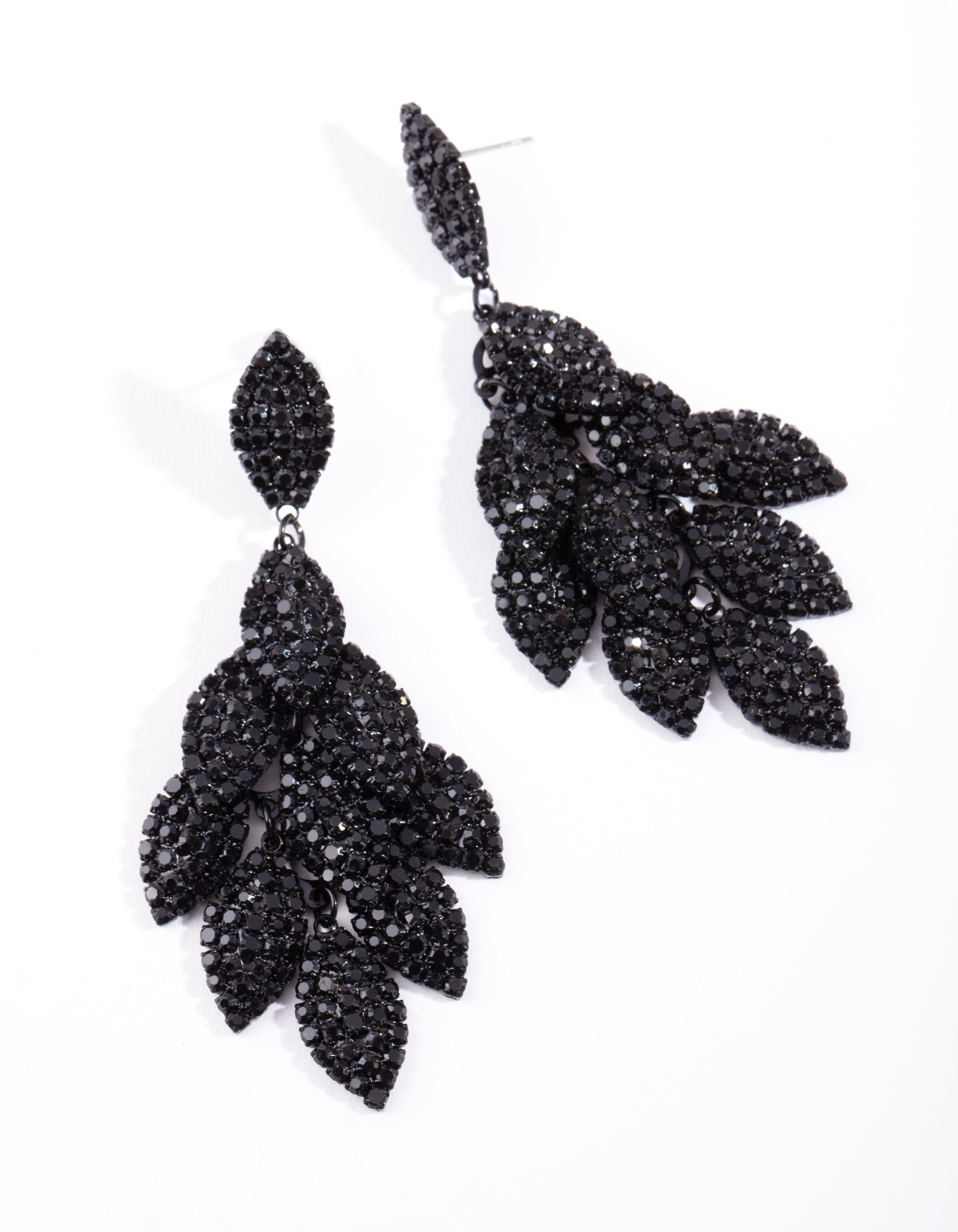 Black Coated Metal Diamante Leaf Earrings