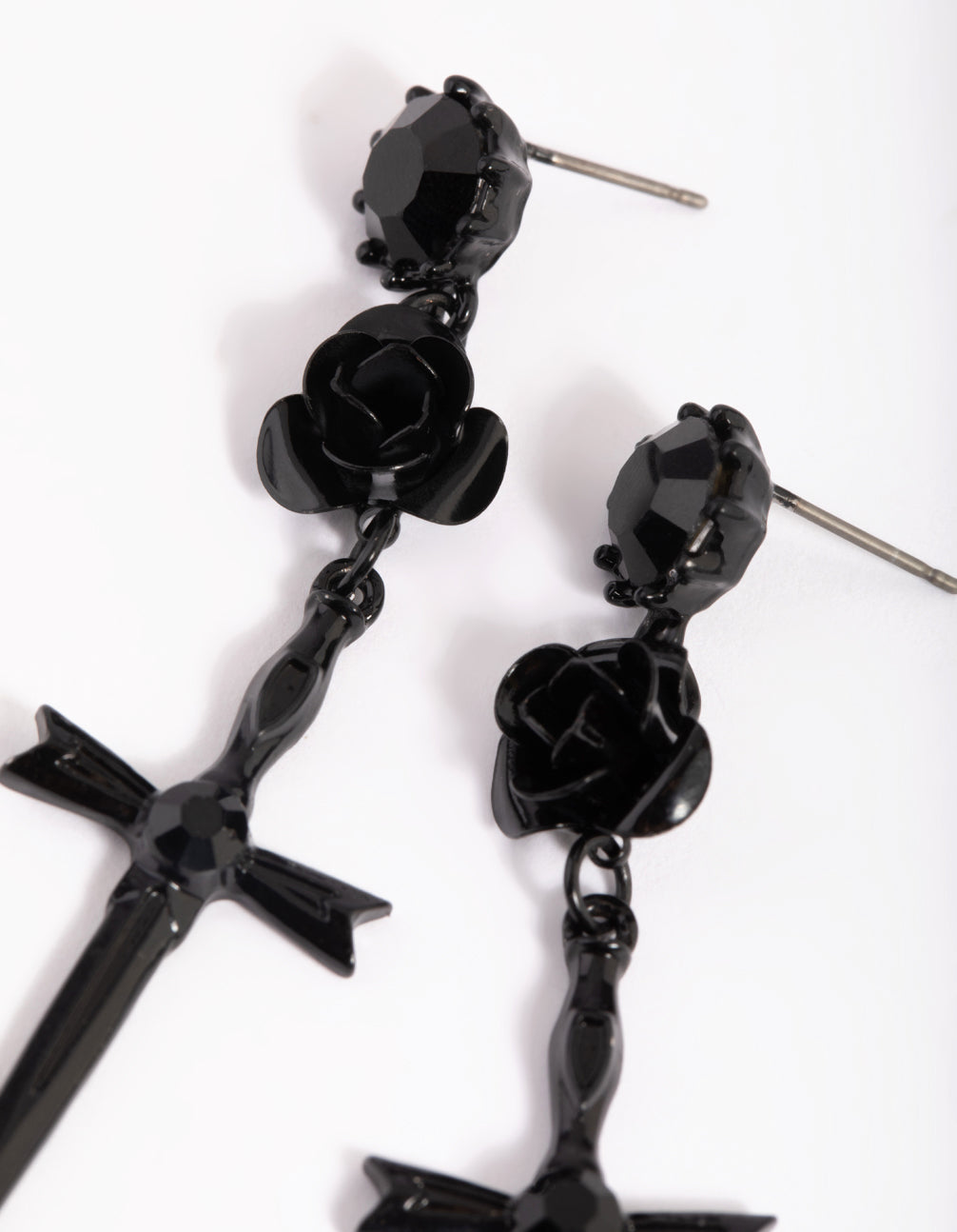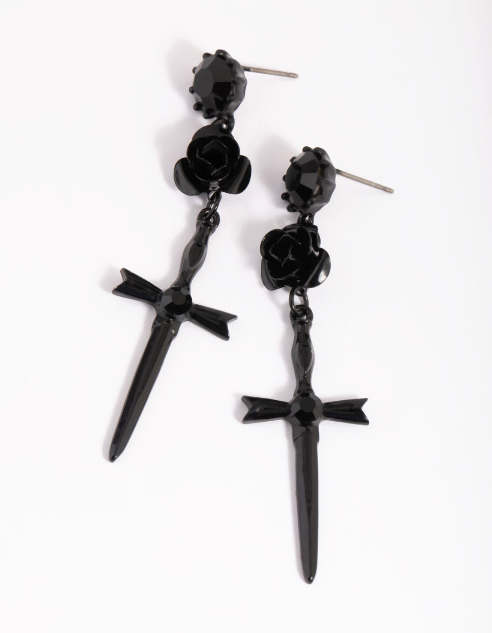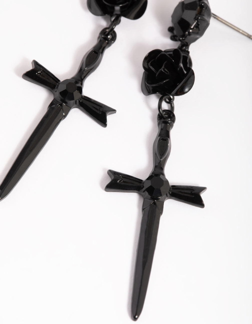 Matte Black Rose & Sword Drop Earrings Matte Black Rose & Sword Drop Earrings Matte Black Rose & Sword Drop Earrings Matte Black Rose & Sword Drop Earrings