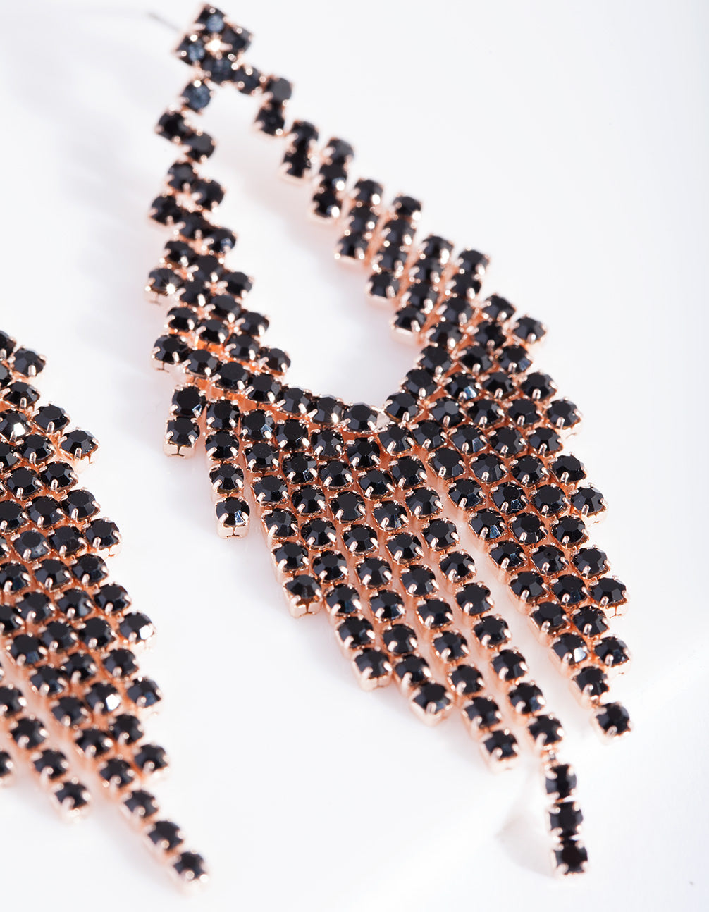 Rose Gold Black Diamante Cupchain Cascading Earrings
