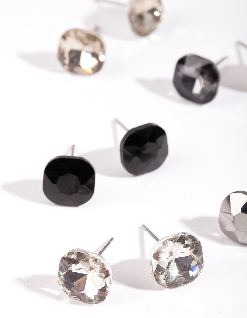 A fun pair of fashion earrings are an easy way to spice up your daily ensembles! This pack comes with a variety of black tone stud earrings. So no matter what the outfit, or the chosen tone of accessories, this diamante stud set will have a stone to match!