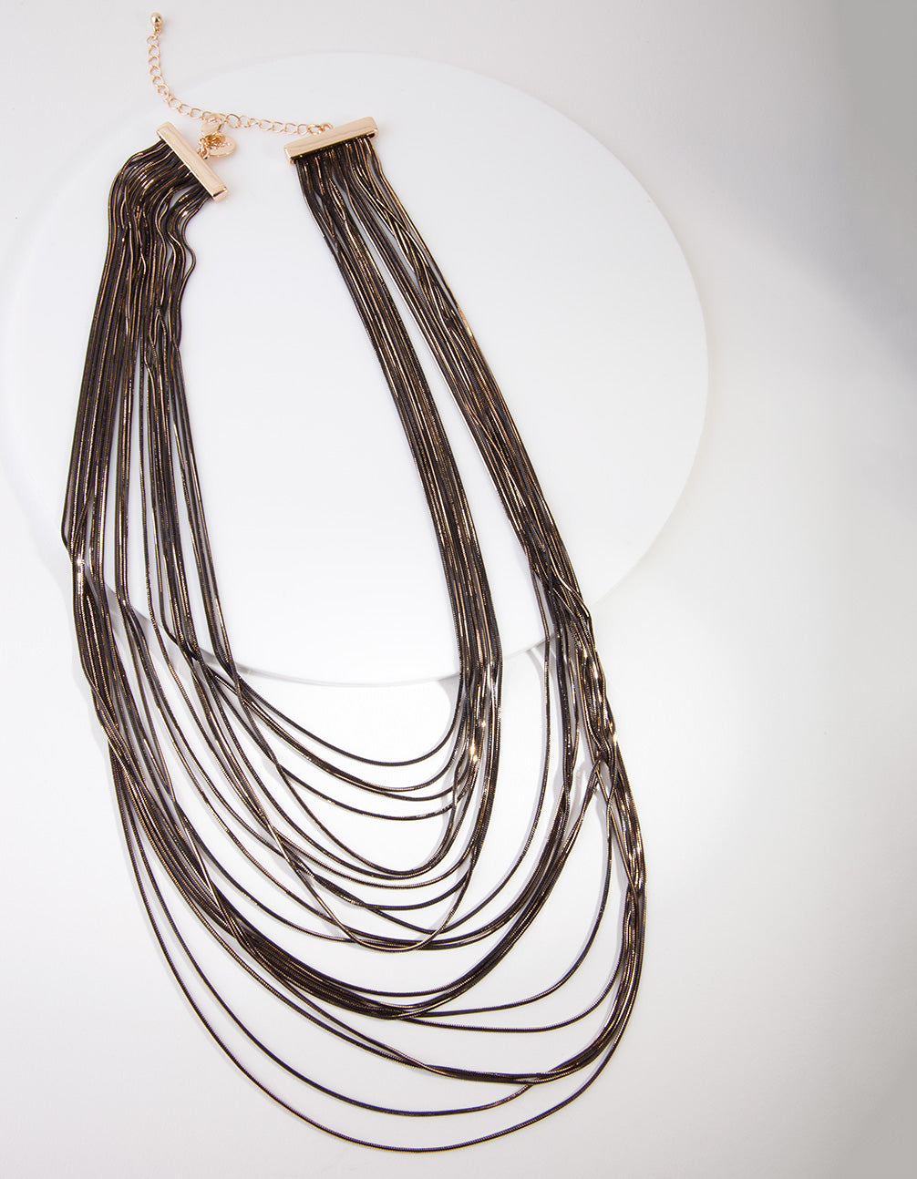 Add a bit of drama to any outfit with black accessories. This necklace features a black and gold-toned layered chain design. Get the layered look in one easy step.