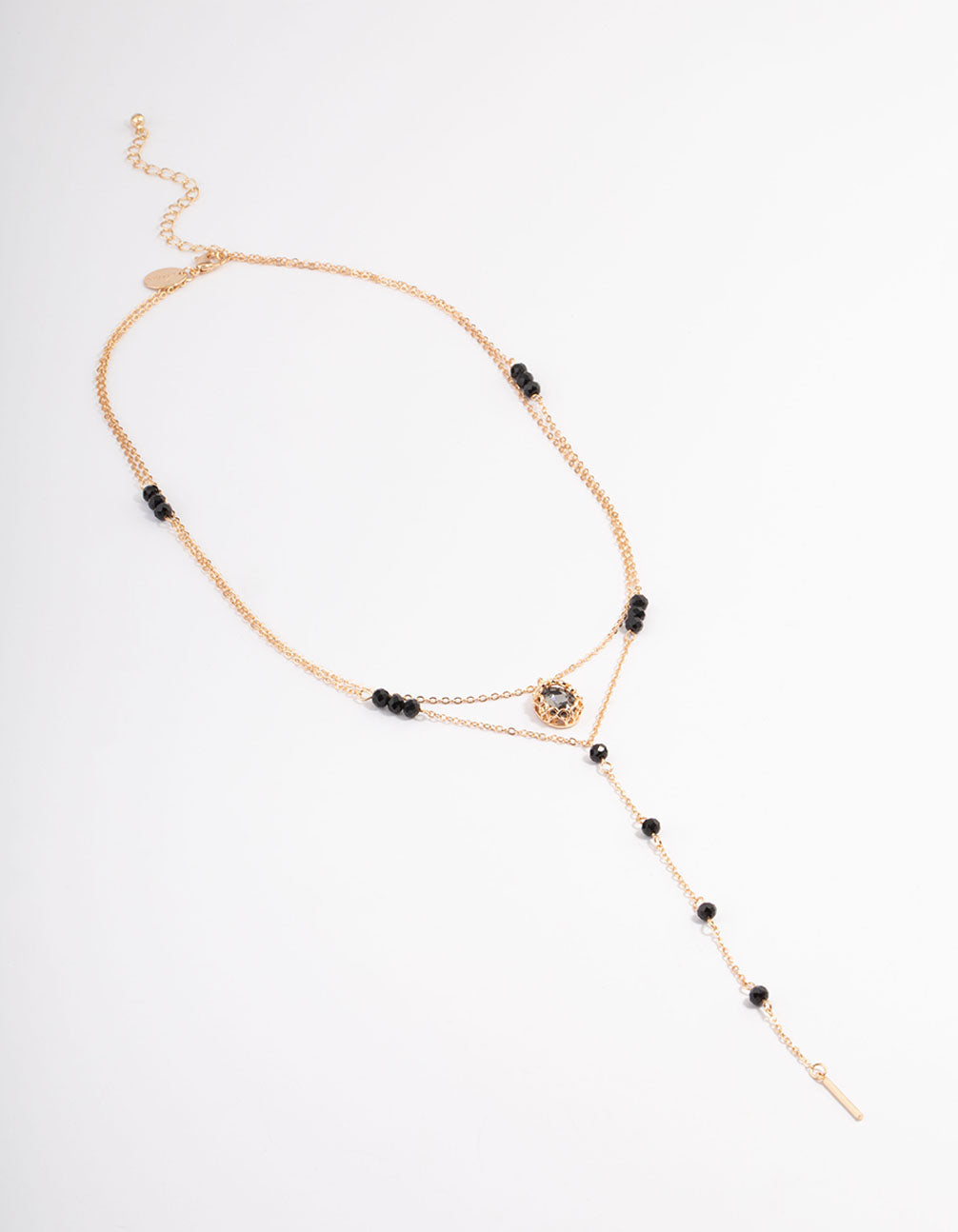 Black Facet Bead Double Row Y-Necklace Black Facet Bead Double Row Y-Necklace Black Facet Bead Double Row Y-Necklace