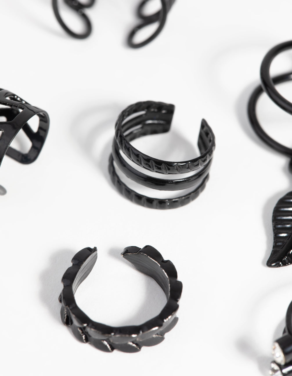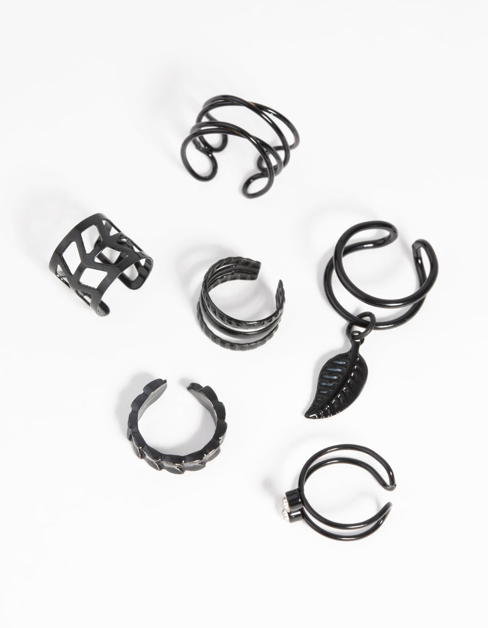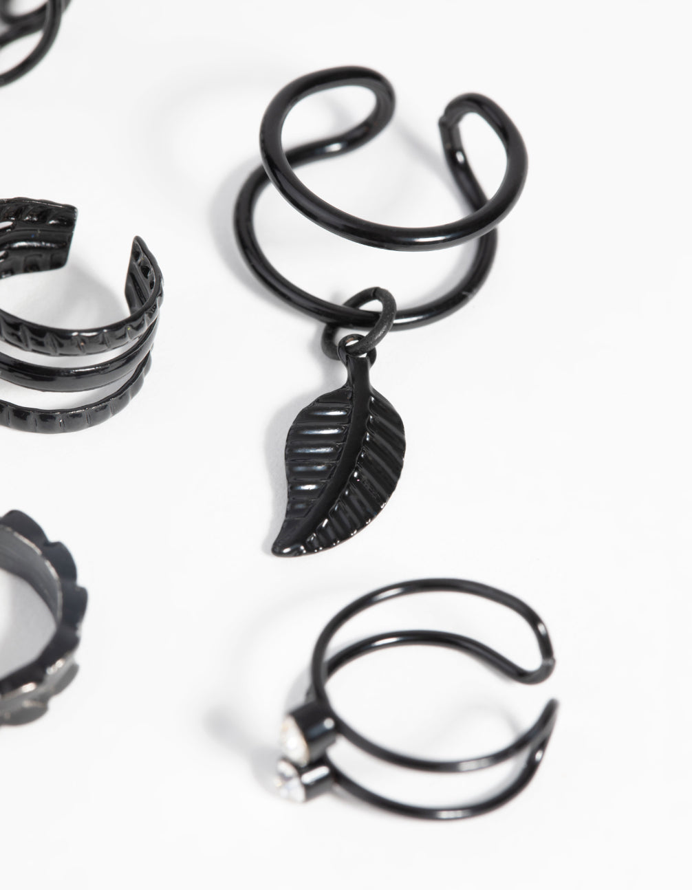 Matte Black Textured Leaf Ear Cuff Earring 6-Pack