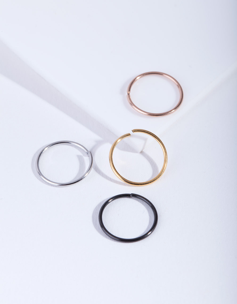 Lovisa body jewellery is made from surgical steel, making it the perfect option for everyday wear. This collection has been made with piercings in mind and features both trend-led and classic styles that you can swap out to suit any occasion. This pack comes with a variety of classic nose rings in mixed metal tones. Mix and match your nose rings to coordinate with a variety of mixed metal accessories!