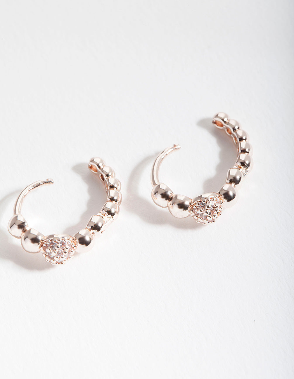 Rose gold toned jewellery makes the perfect feminine touch to your weekend looks. This pair of huggie earrings are made for stacking and boast a beaded embellishment with diamantes.
