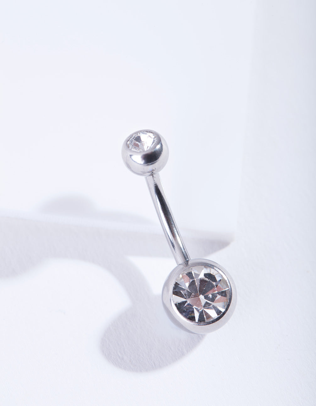Belly bars and rings are a fun way to show off your style and add something different to your vacation or poolside outfits. This belly bar is silver in tone and features a diamante accent on each end for subtle sparkle. It has a surgical steel post, which makes it more gentle for daily use. Check out our cubic zirconia range for accessories to match!