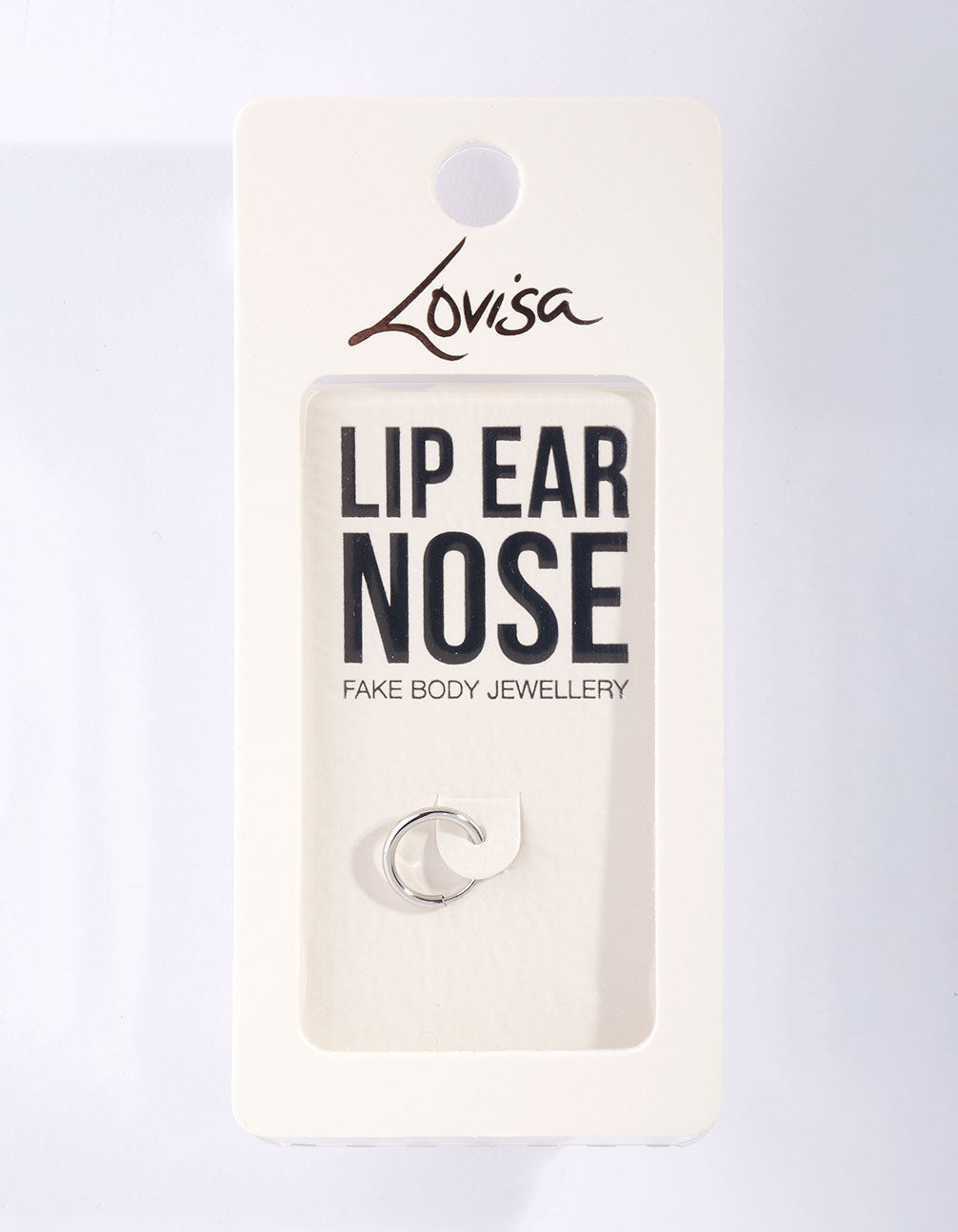 Trial and experiment with fake piercings; no needles necessary - just interchangeable style! This ring can be used for a faux lip, ear or nose piercing. Try layering varying sized hoops and faux styles to create the look of an on-trend 'ear stack'!